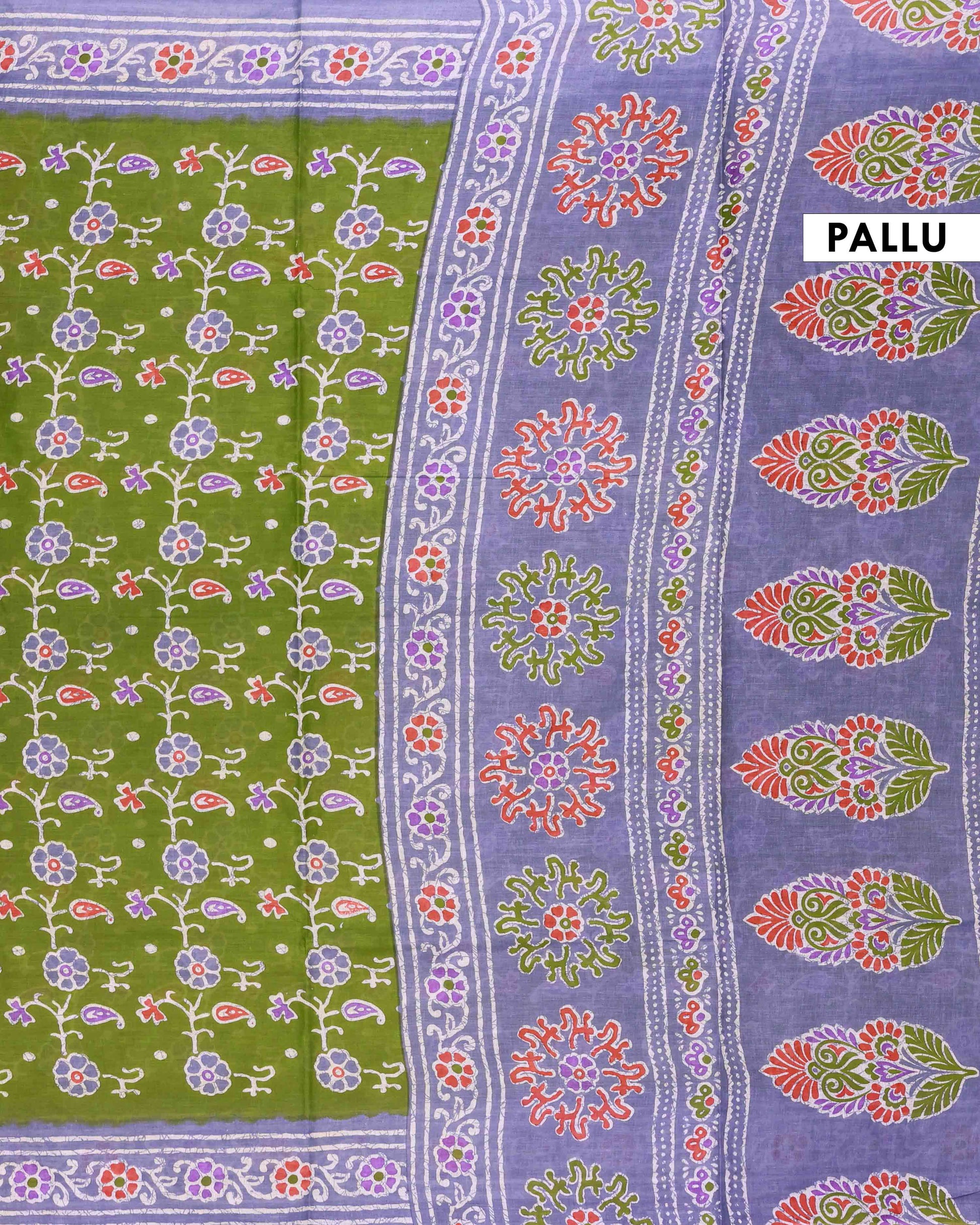 - Voile Cotton Saree adorned with graceful floral motifs and a contrasting printed border that adds traditional charm