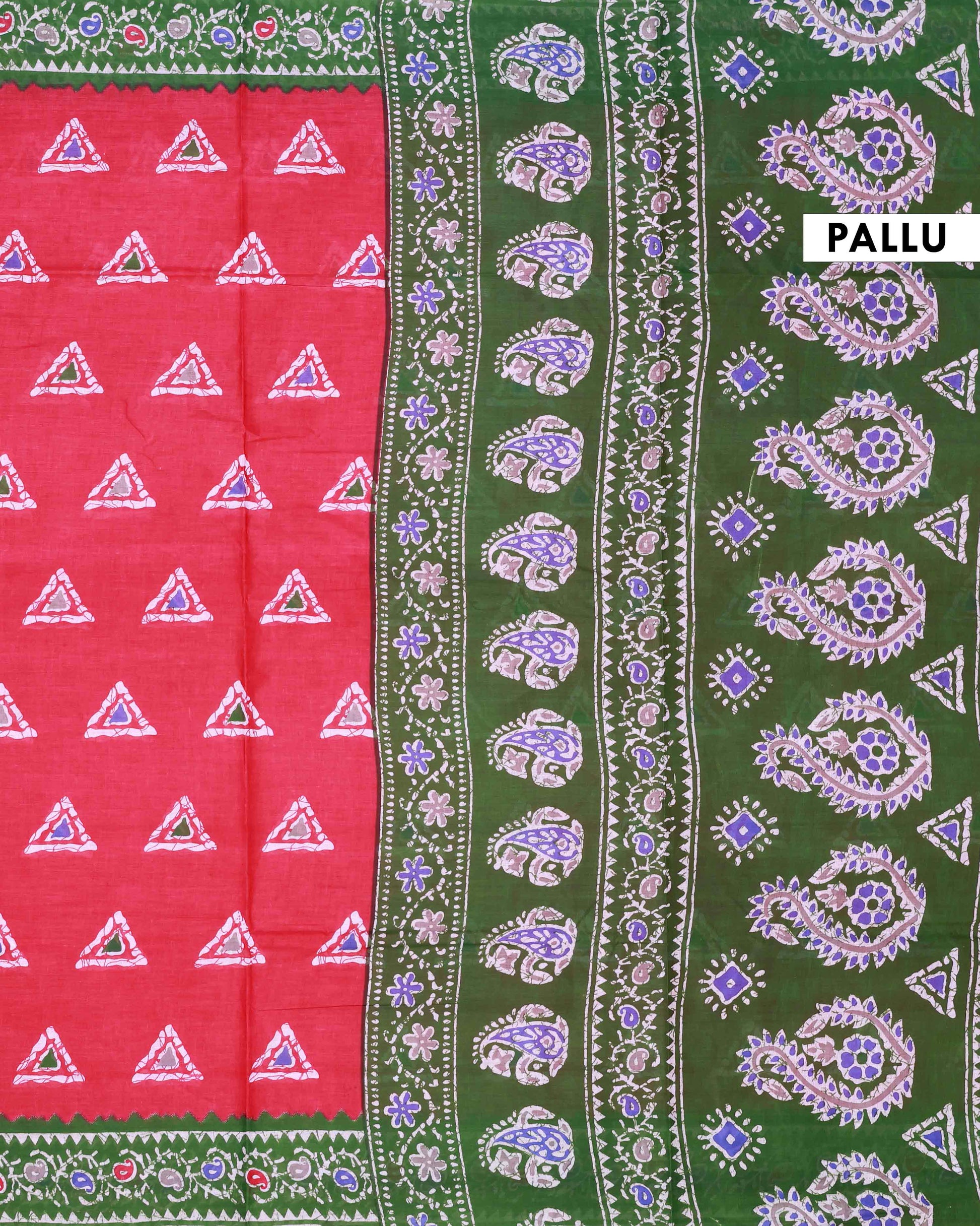 - Handcrafted Voile cotton saree with distinctive tribal inspired triangle motifs and a beautifully woven ethnic border