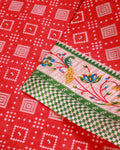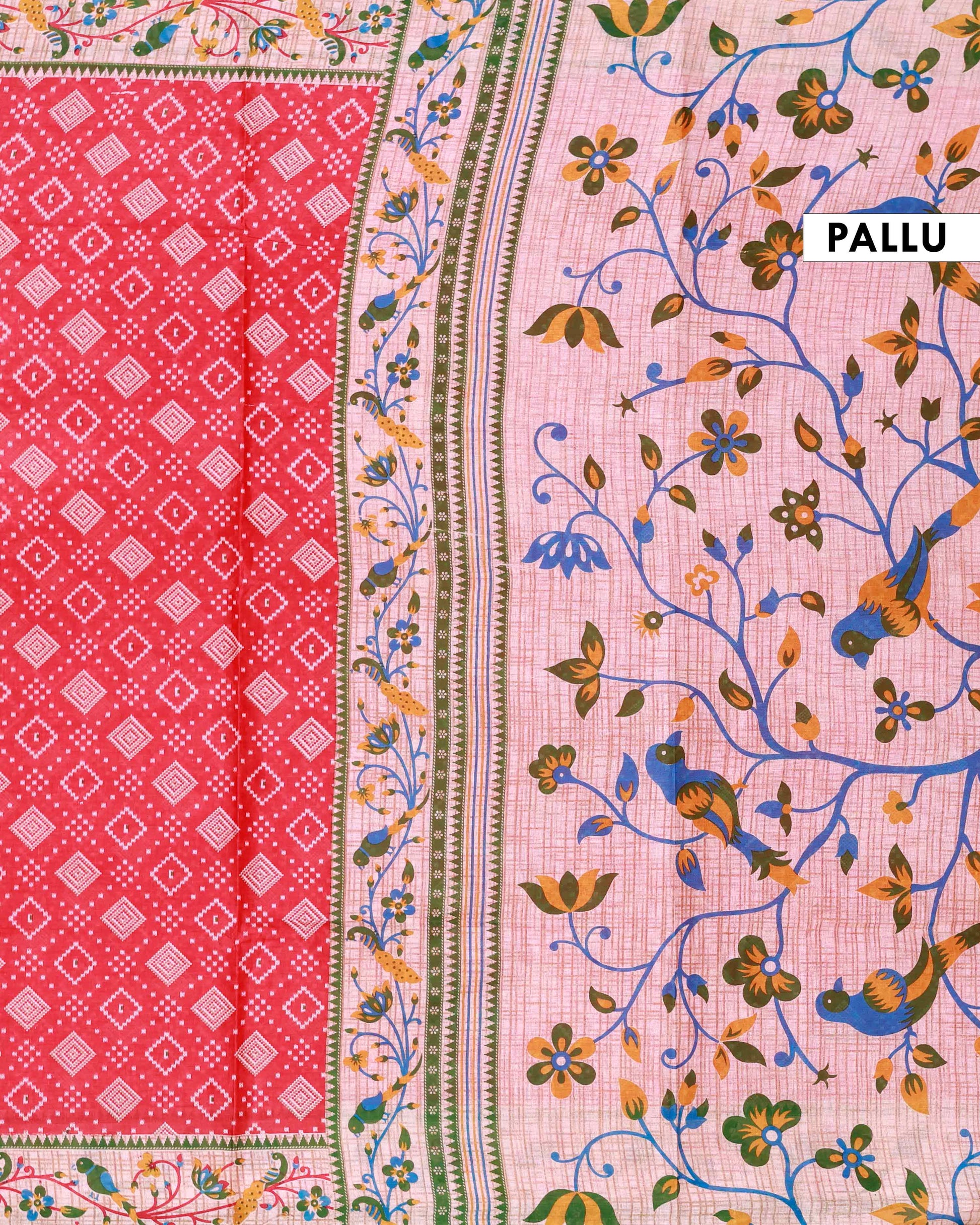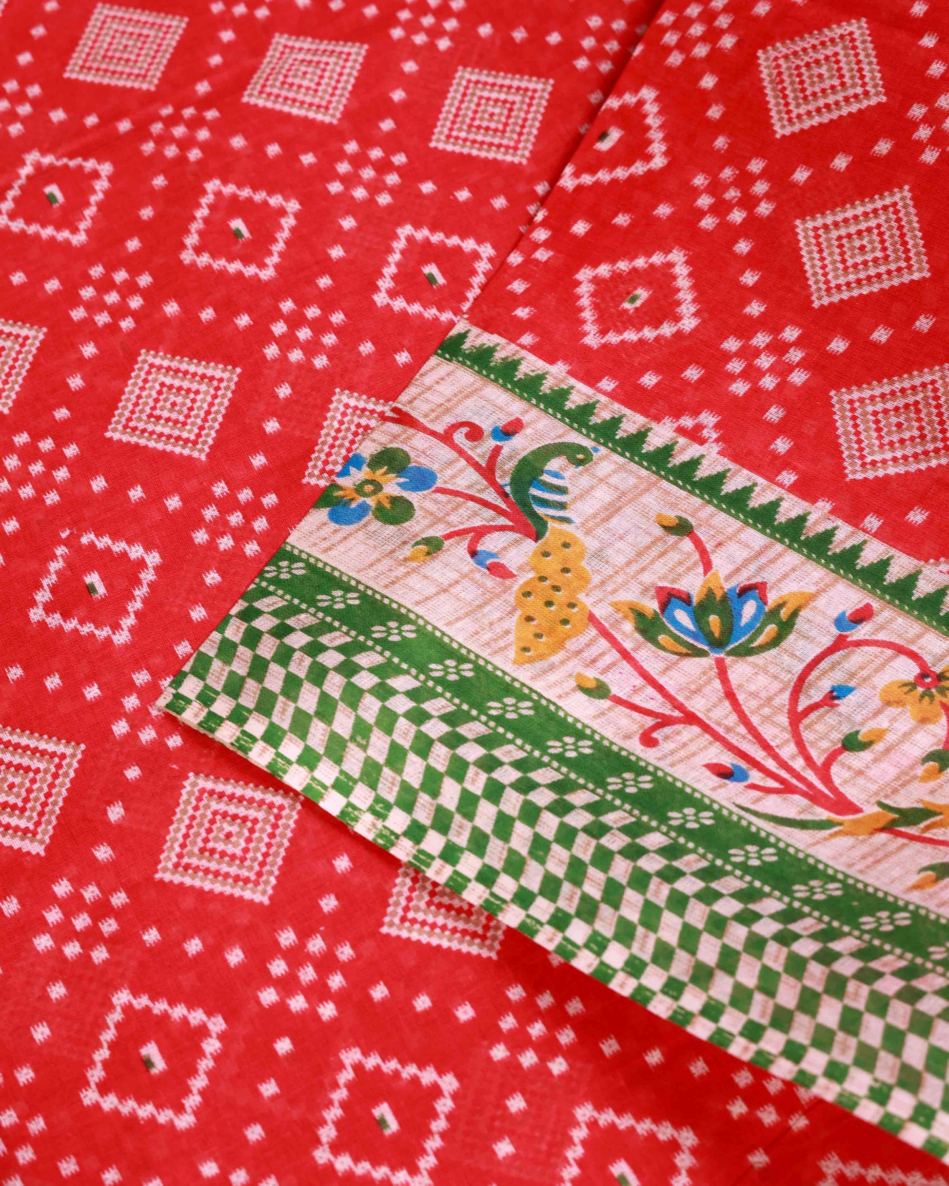 All-Over Floral Printed Voile Saree with Intricate Contrast Border – Red