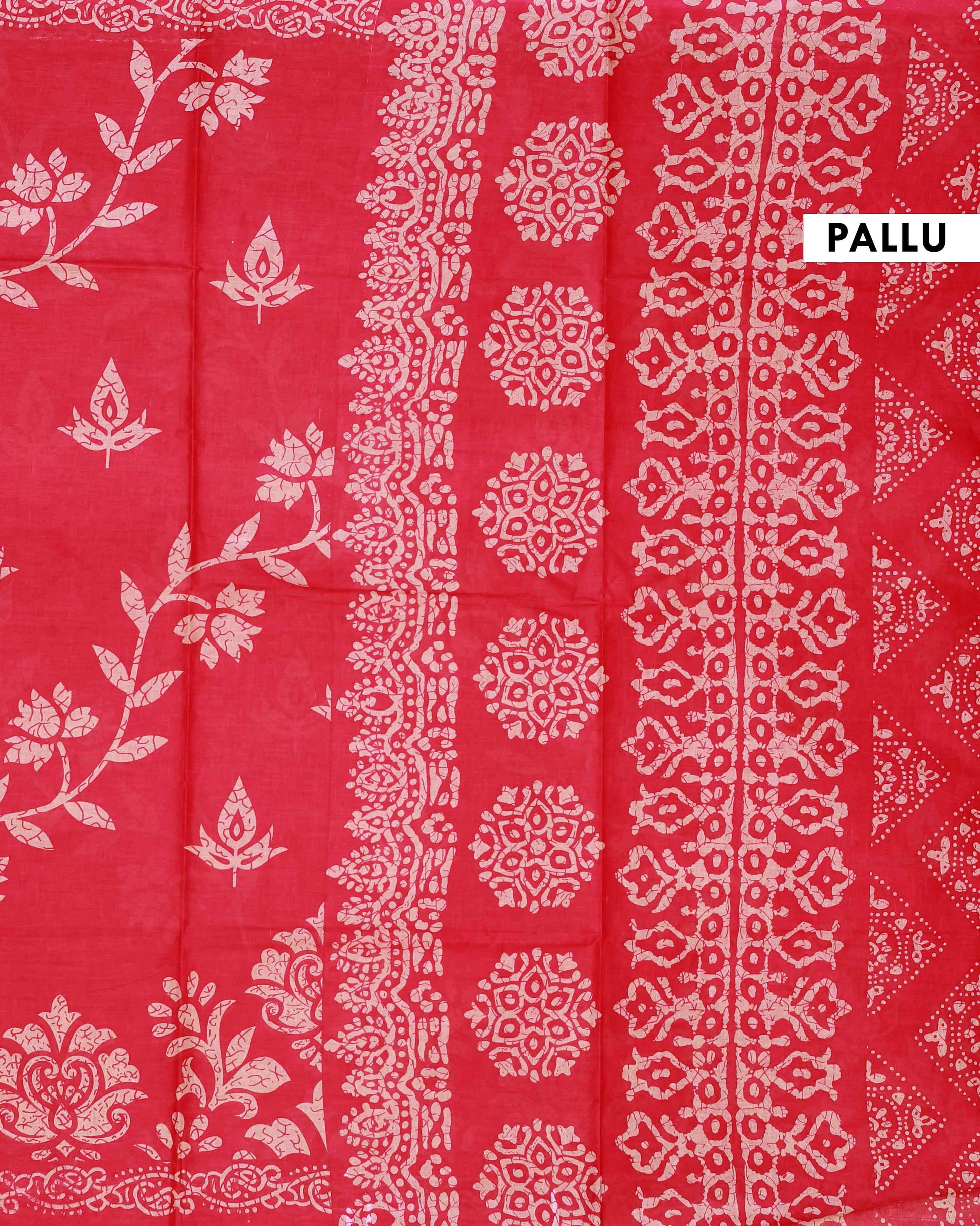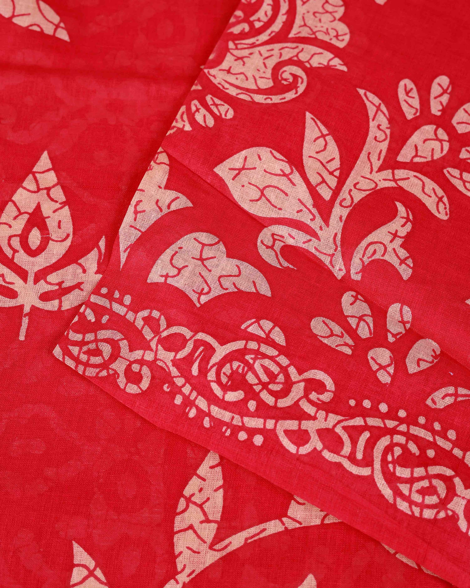 All-Over Floral Printed Voile Saree with Intricate Contrast Border – Red