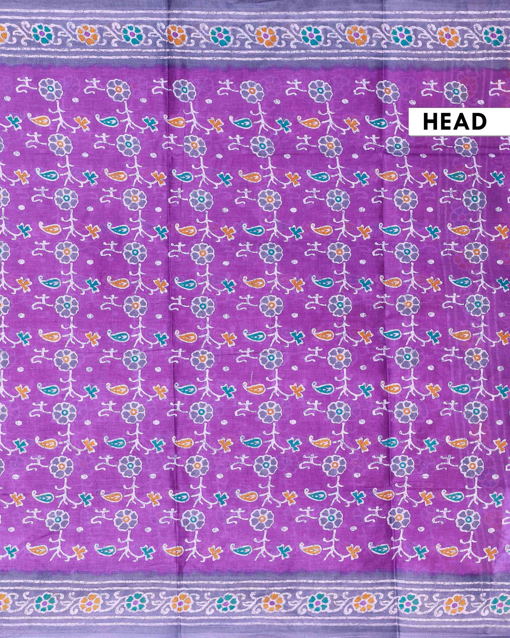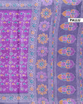 All-Over Floral Printed Voile Saree with Intricate Contrast Border – Violet