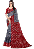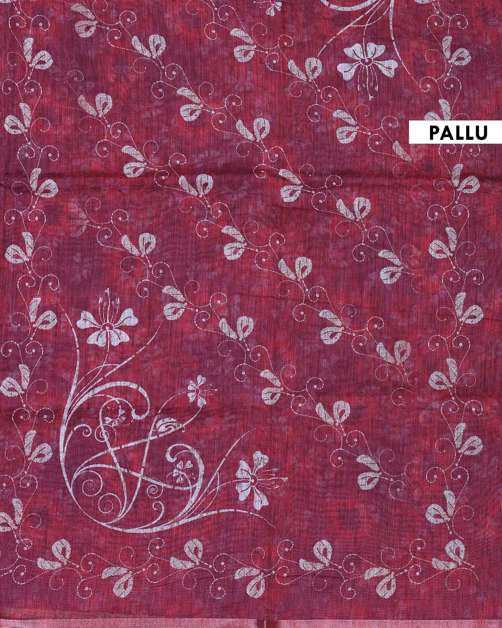 Elegant Linen Cotton Saree with Floral Prints - Grey