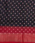 - Elevate your style with this elegant black Dola silk saree a checked pattern and a striking red woven border