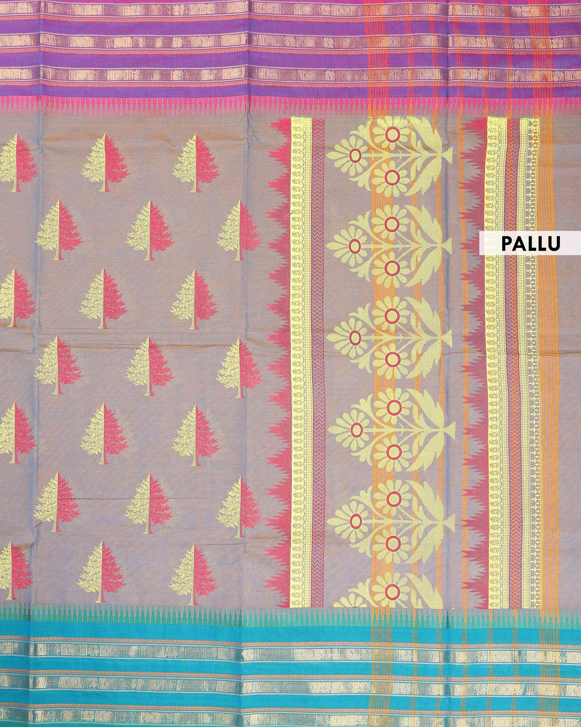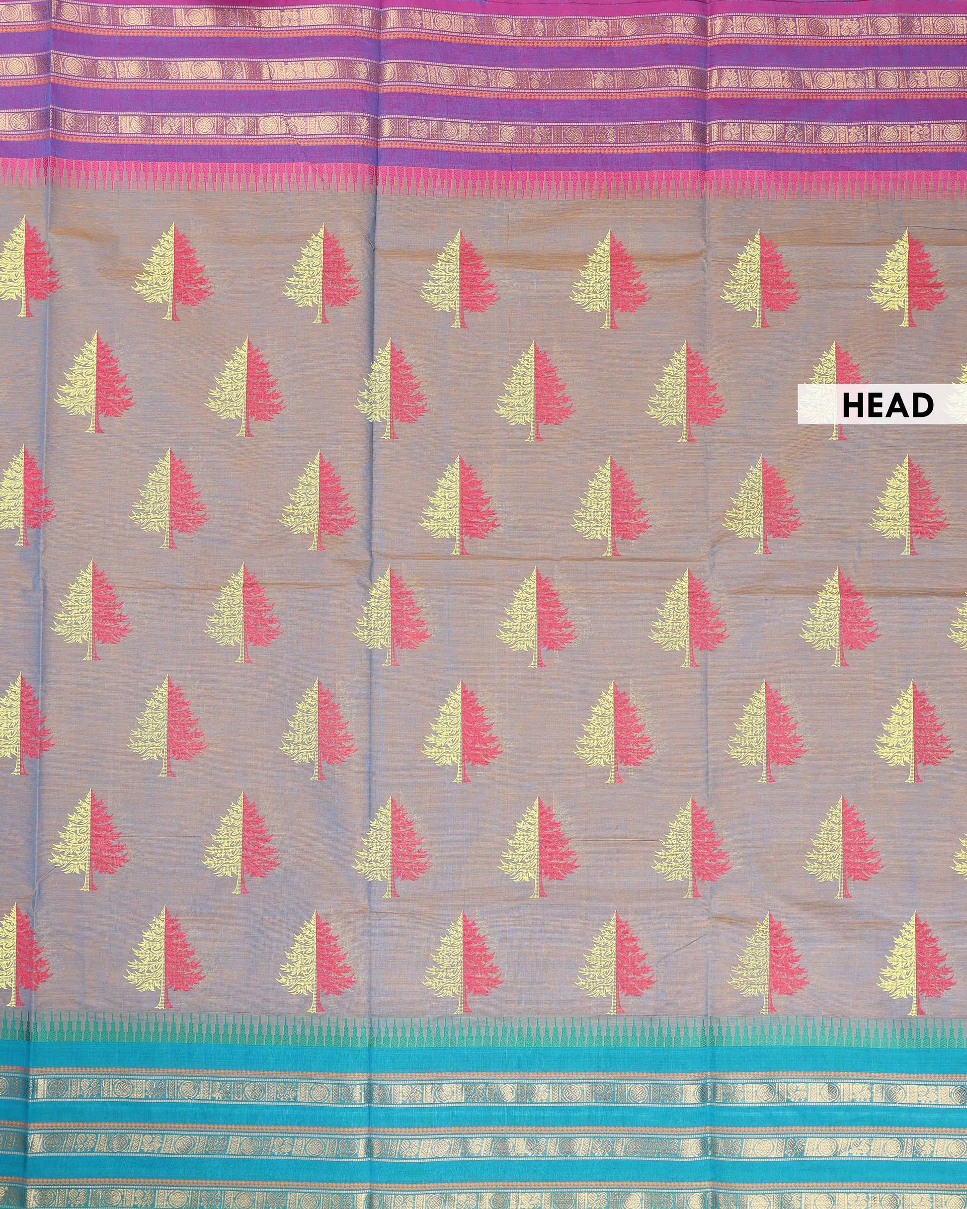 Artisanal Handloom Cotton Saree with Zari Motifs - Brown