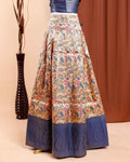 Digital Print Semi-Stitched Bridal Lehenga Material - Blue