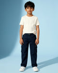 Boys Classic Denim Cargo Jeans with Front Pockets and Zip Detailing - Blue
