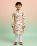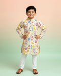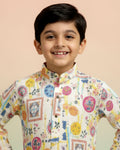 Boys Festive Cream Kurta Set with Multicolor Mandala & Frame Print