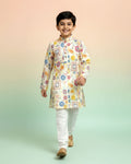 - Shop this comfortable and stylish beige & white printed kurta with pyjamas for kids, ideal for traditional events and parties.