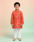 Boys Festive Orange & Gold Brocade Kurta Set with Traditional Mughal Motif Pattern