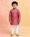 Boys Festive Pink & Gold Brocade Kurta Set with Traditional Mughal Motif Pattern