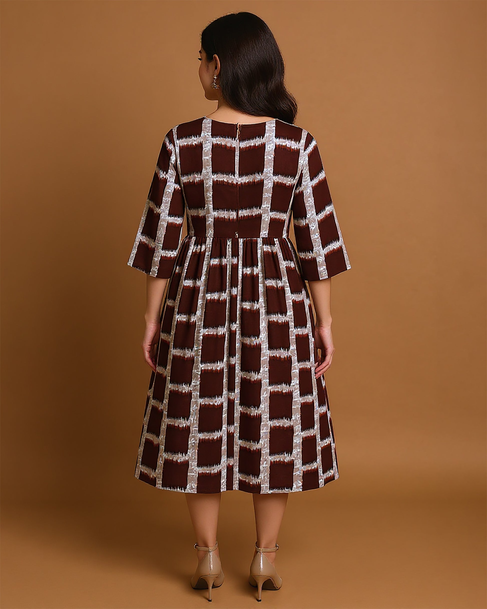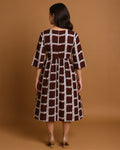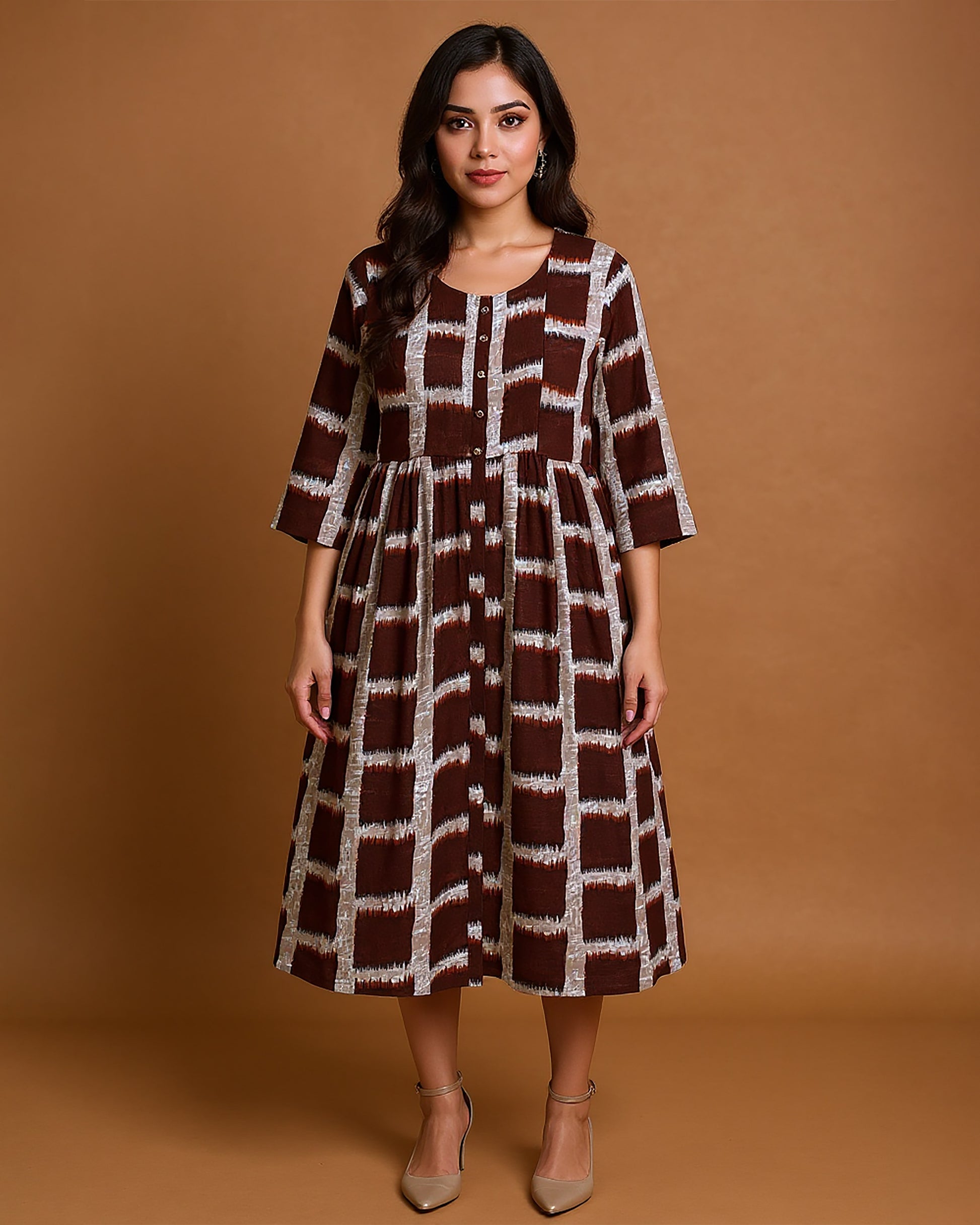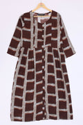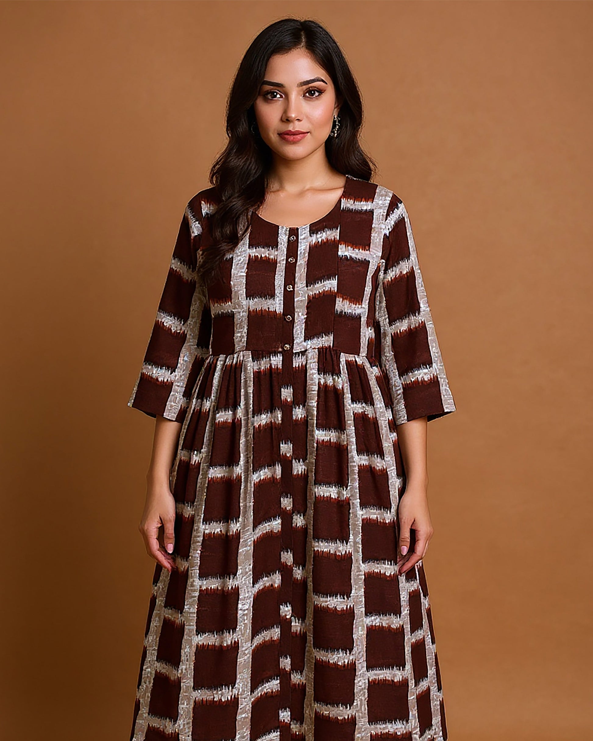 Maternity Wear - Brown Earthy Brown & Beige Block Print Button-Down Feeding Top