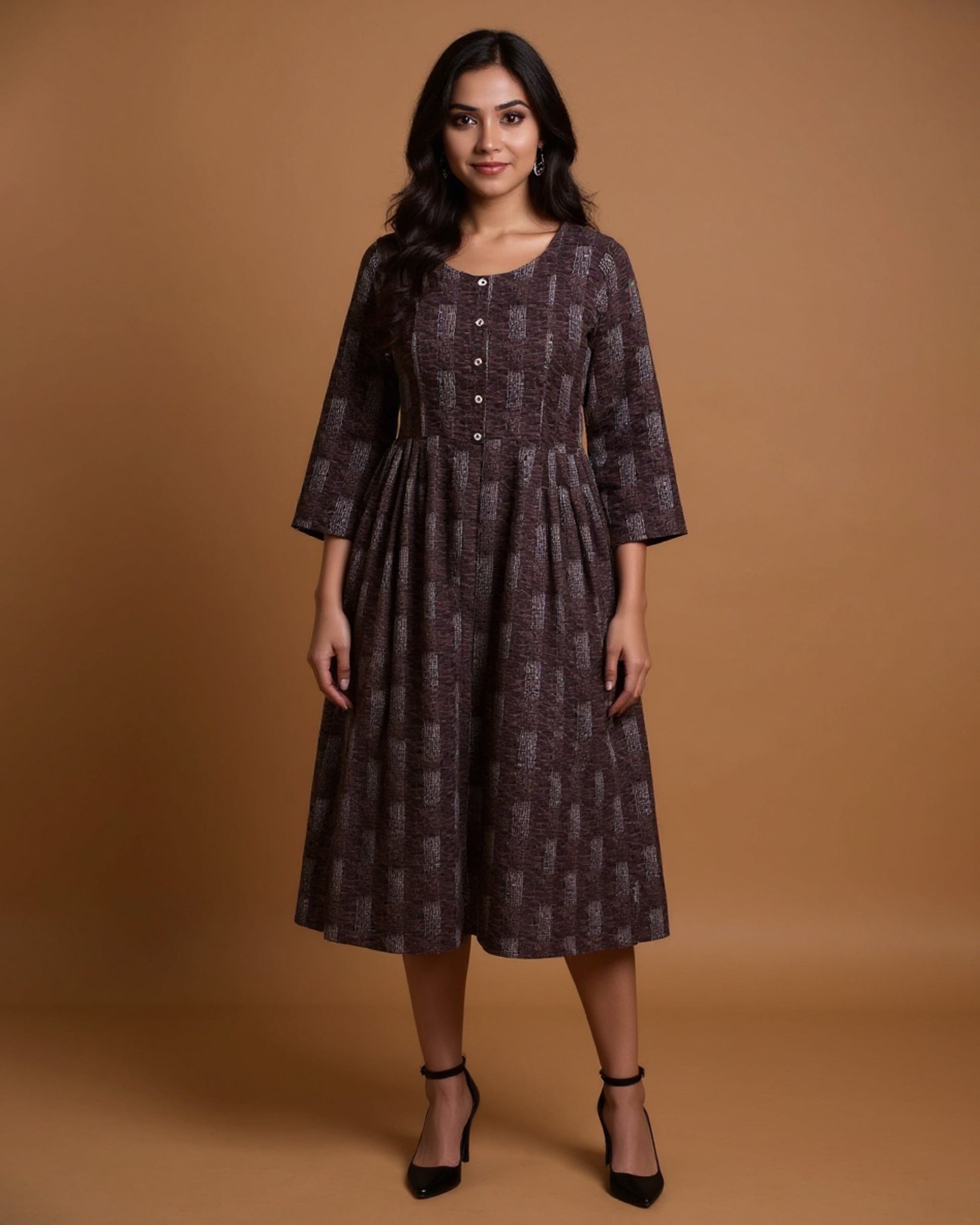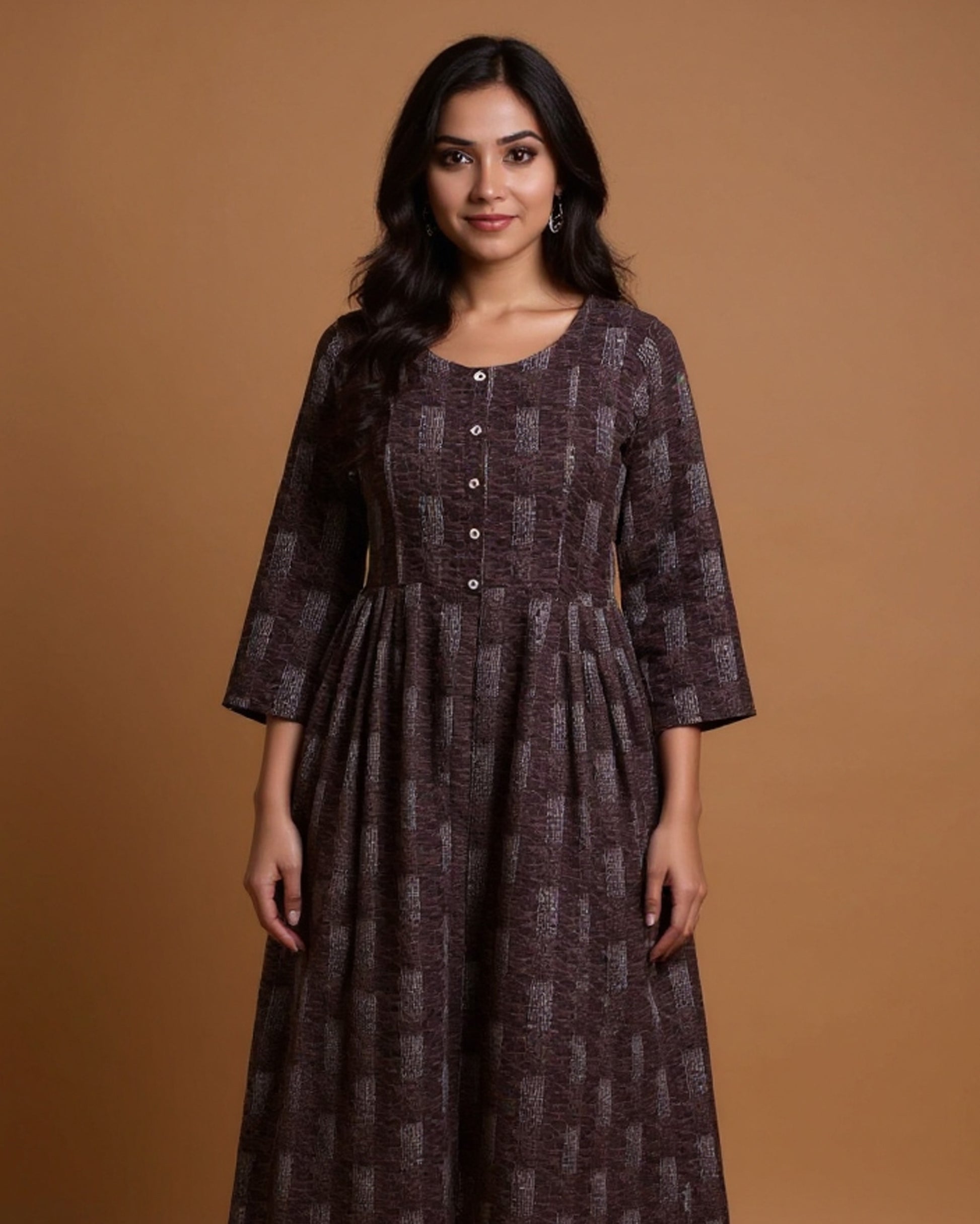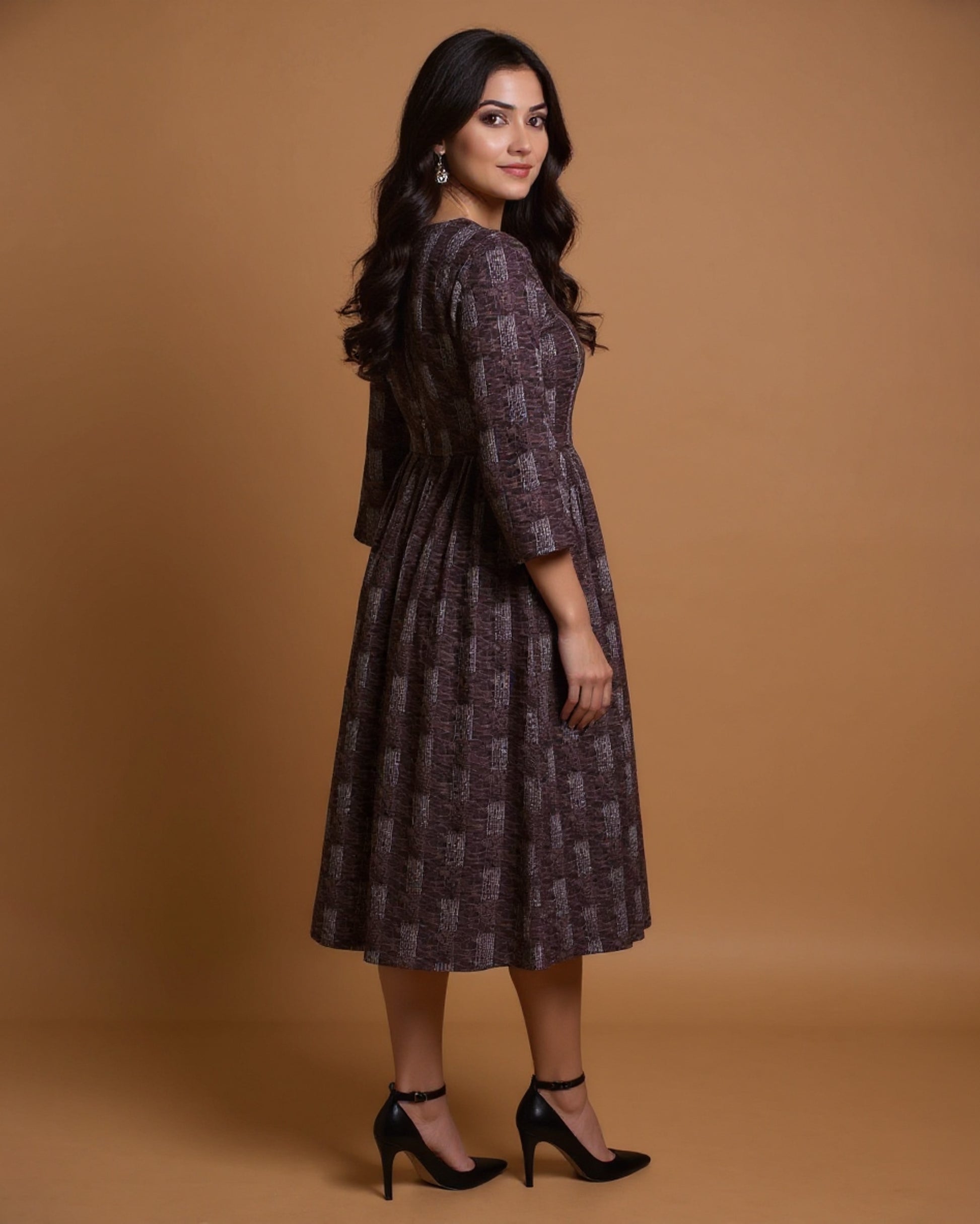 Maternity Wear - Brown Textured Speckle Print Women's Feeding Top
