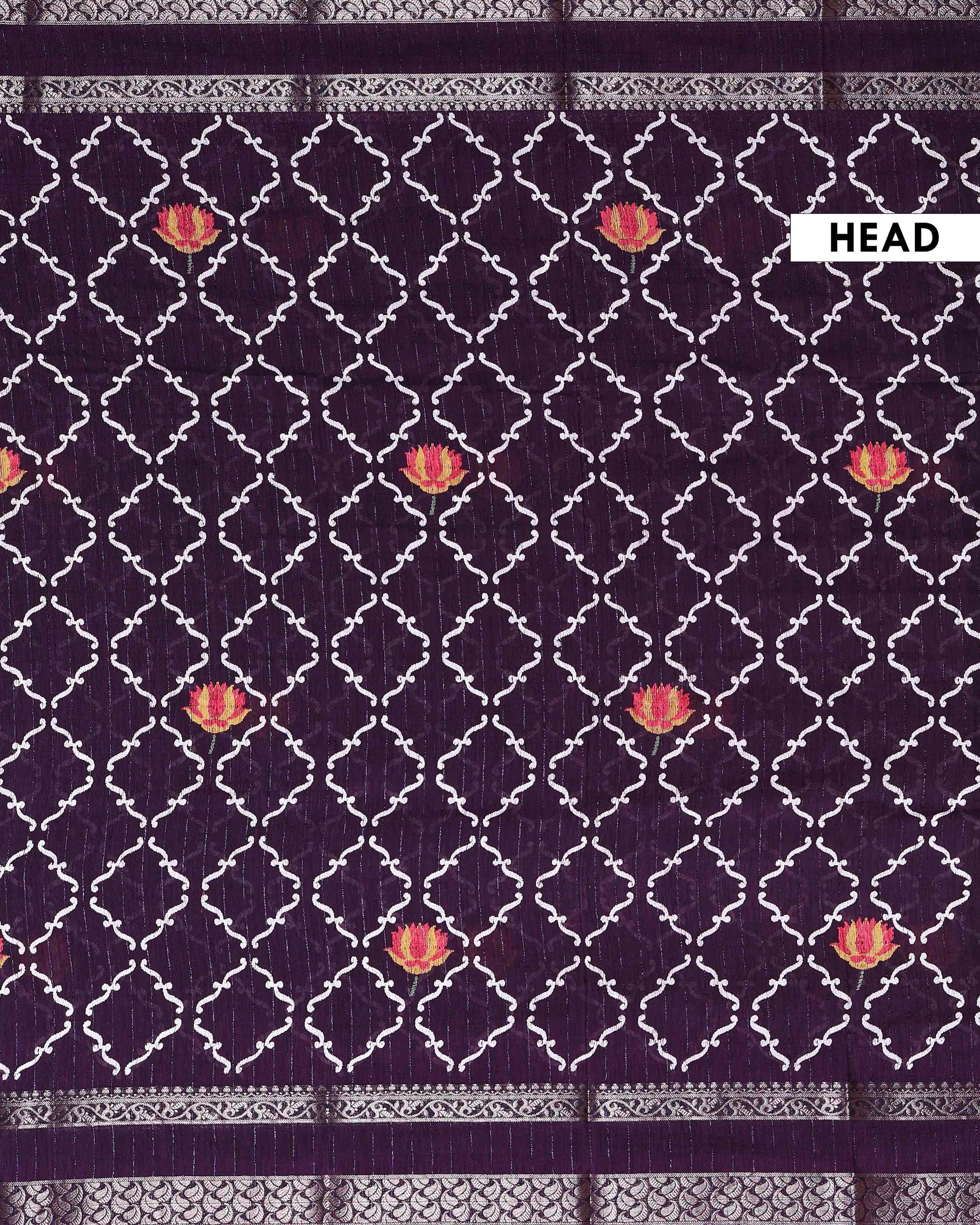 Classic Dola Silk Saree with Traditional Floral Lattice Patterns And Silver Zari Border - Violet
