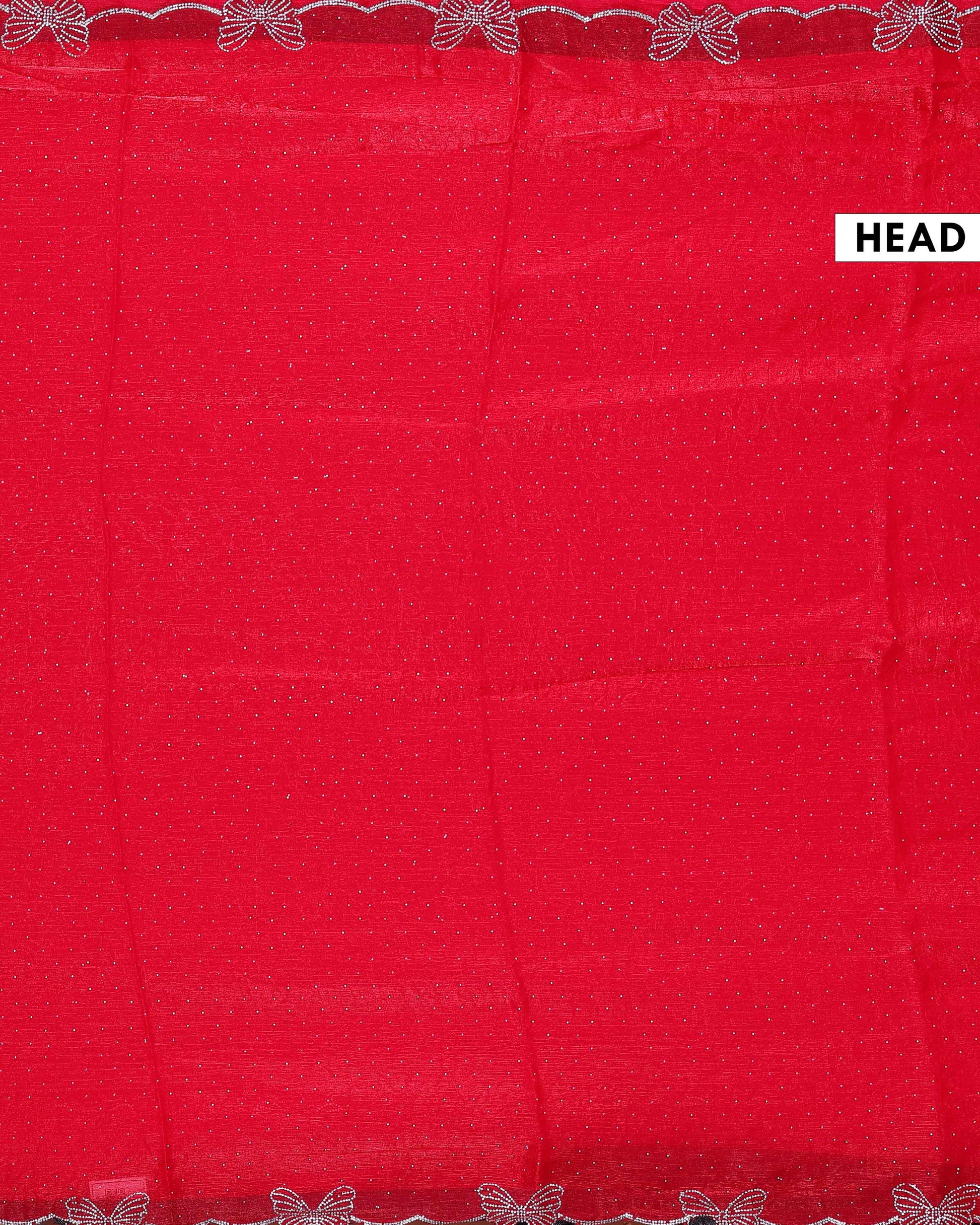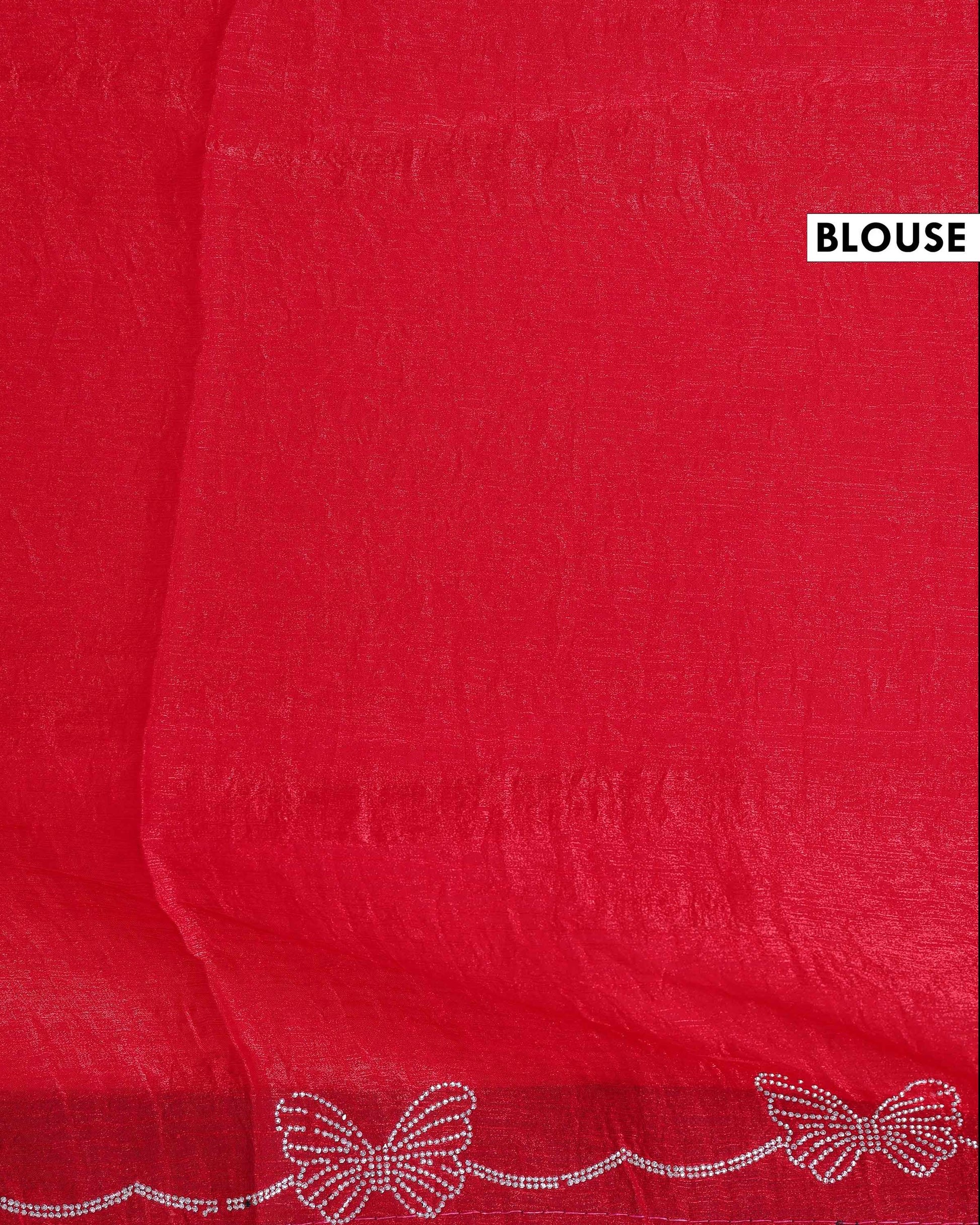 Classic Embellished Fancy Saree with Delicate Butterfly Patterned Lace Border - Red