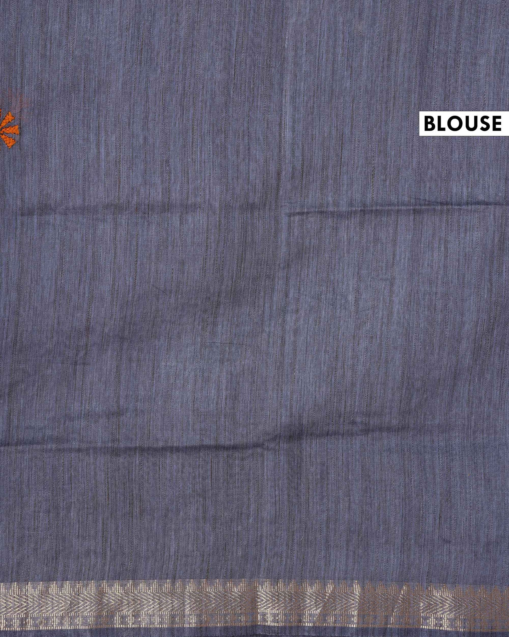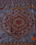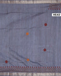 - This beautiful Grey Kantha saree features intricate traditional embroidery along the border and pallu