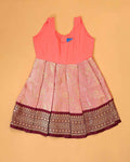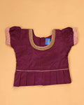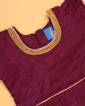 Classic Kids Pattu Pavadai Readymade a Traditional Ethnic Gown with Zari Border & Puff Sleeves - Burgundy