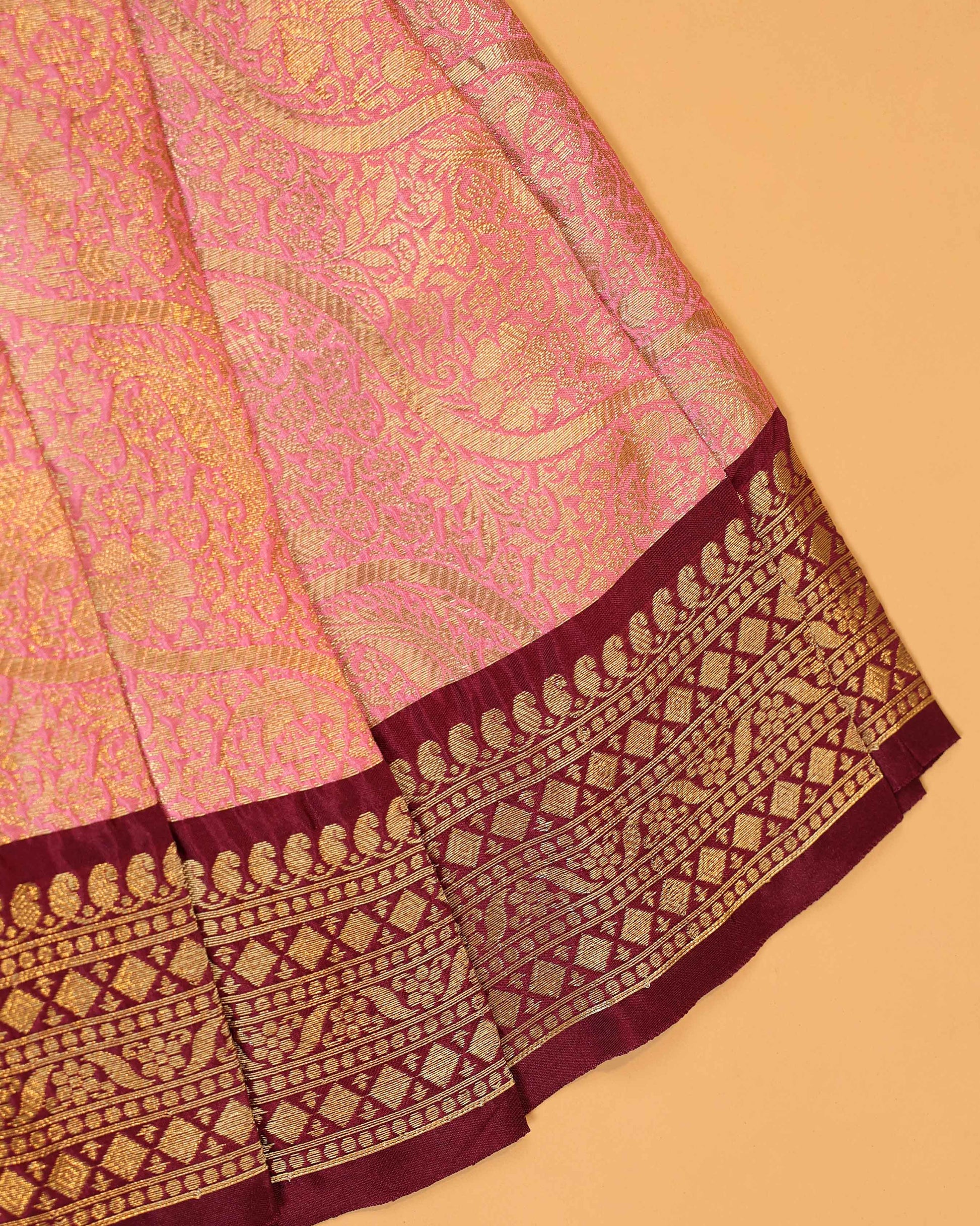 This Burgundy Pattu pavadai is a traditional Art Silk outfit known for its rich fabric and festive charm.