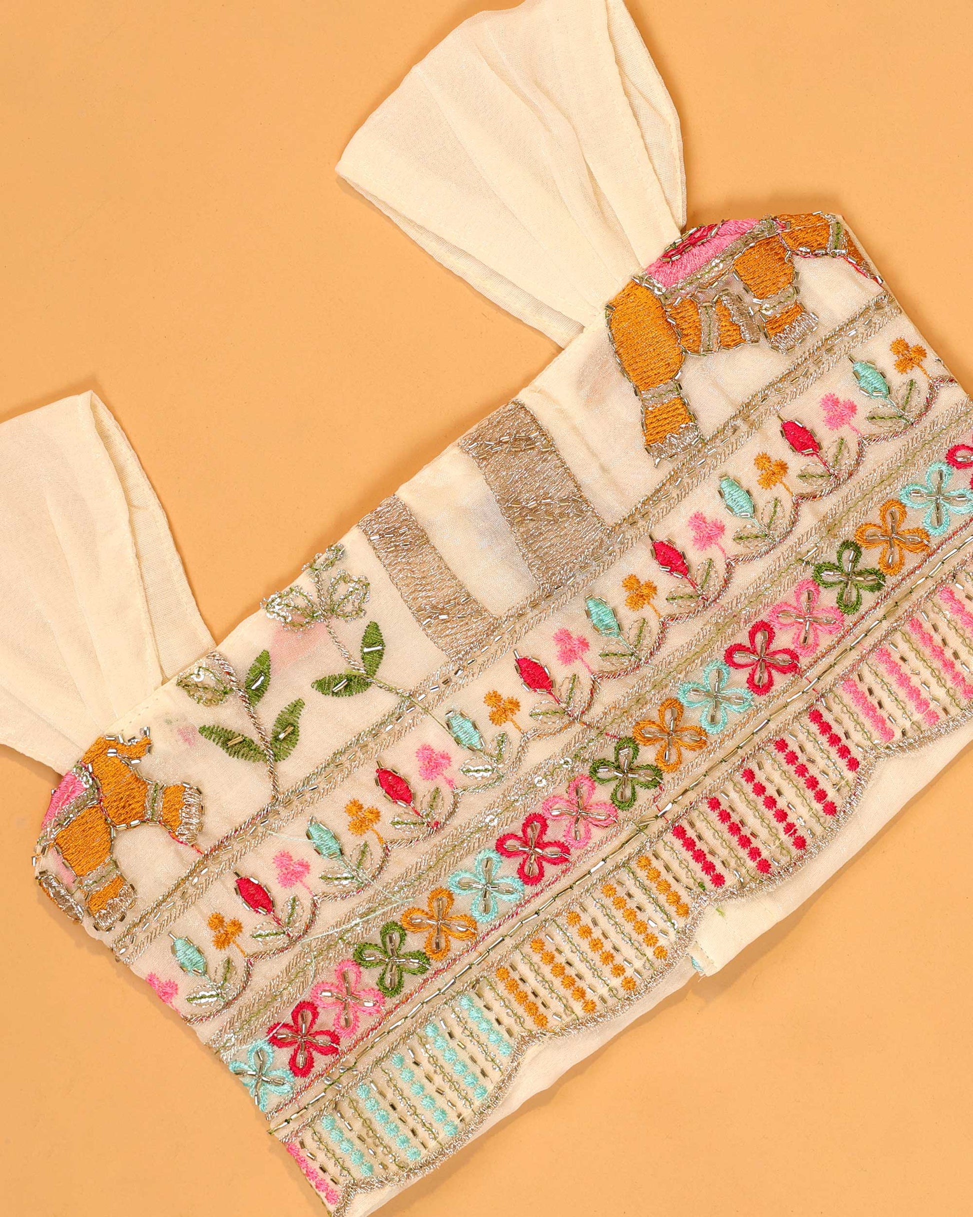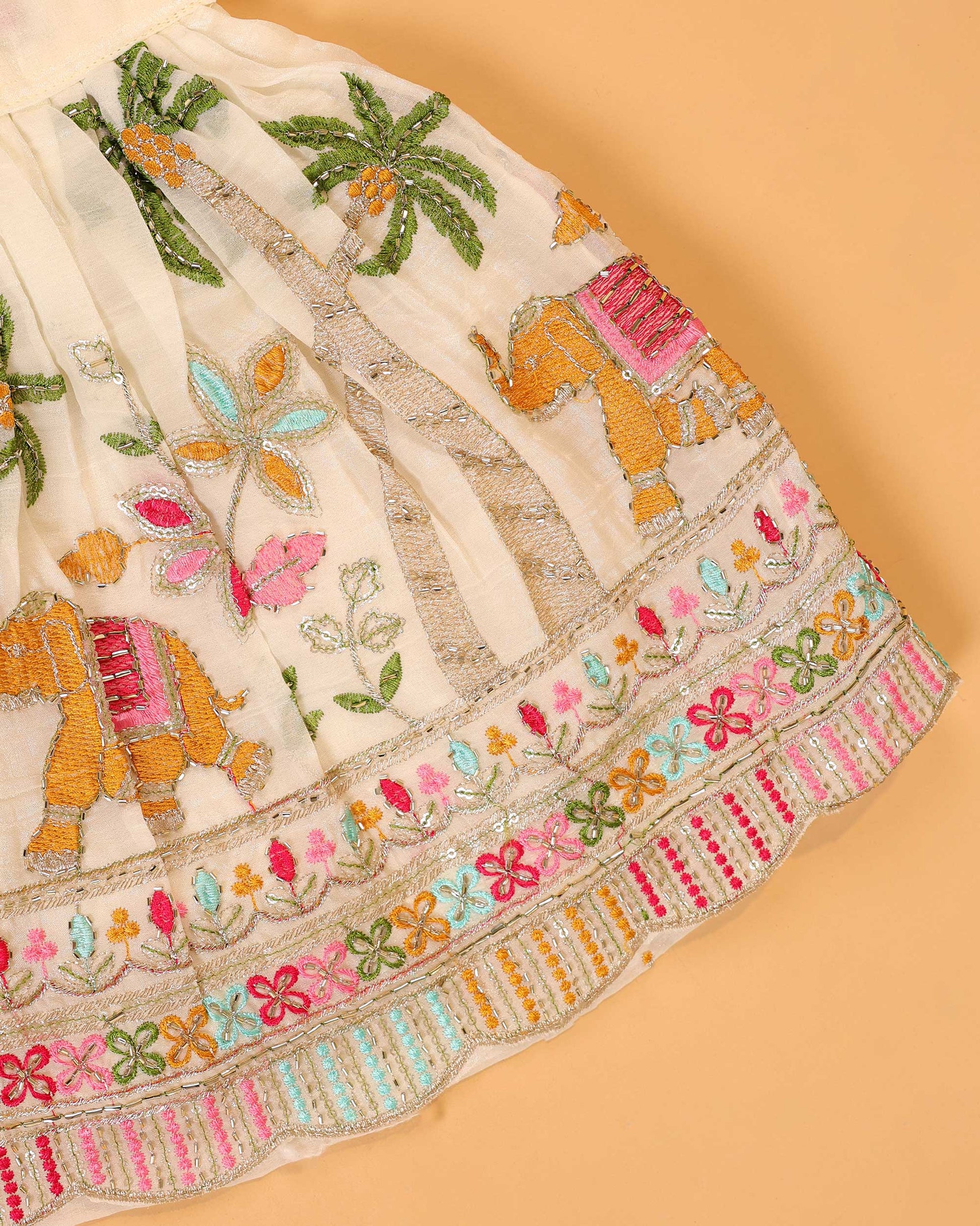 Classic Kids Pattu Pavadai Readymade a Traditional Ethnic Top with Embroidery - Off White