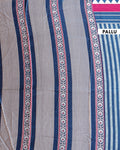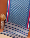 Classic Modal Satin Saree with Horizontal Striped Pattern Geometric Accents and Traditional Intricate Border Design - Blue