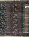 Classic Semi Chanderi Saree with Floral Inspired Print and Zari Border - Black