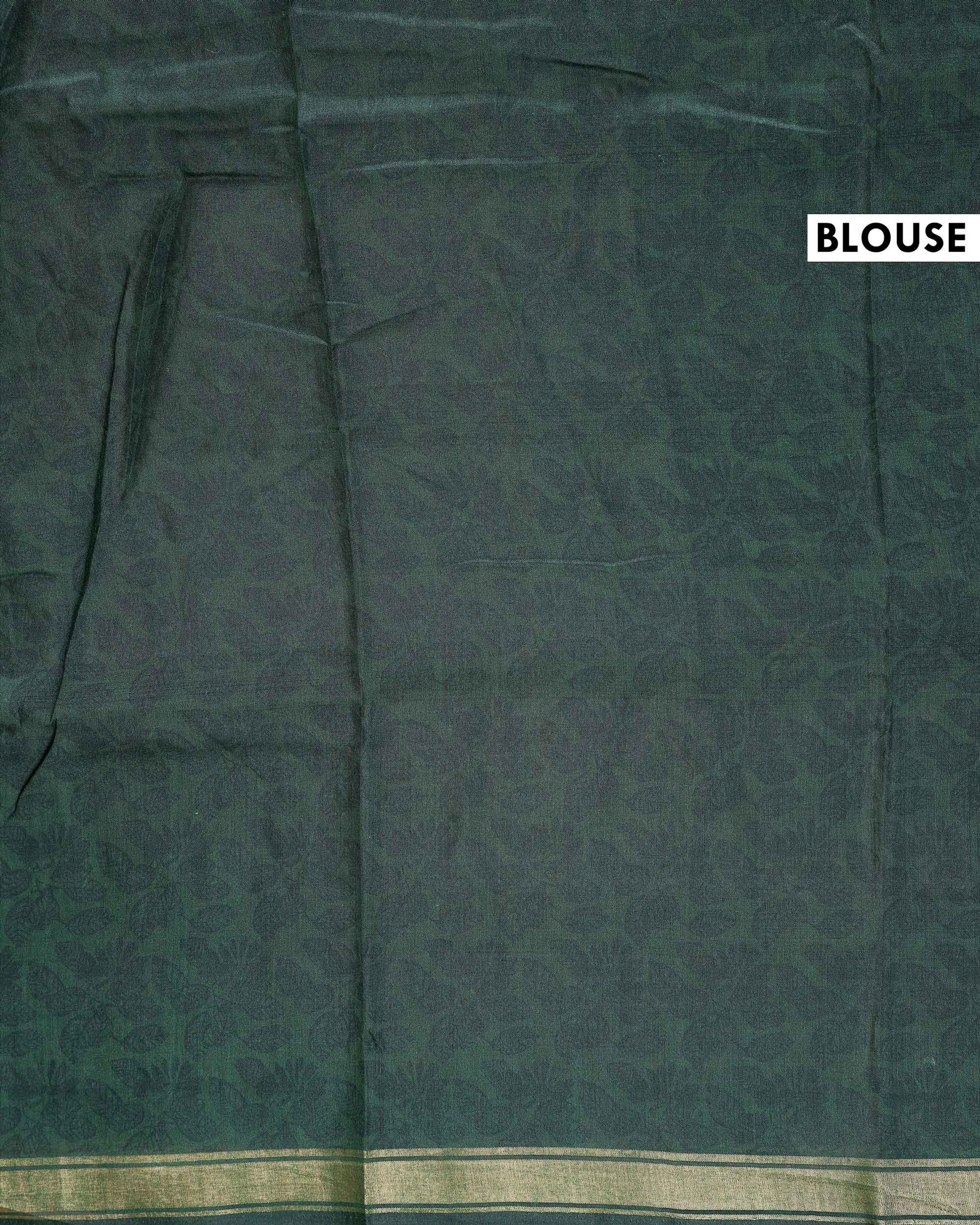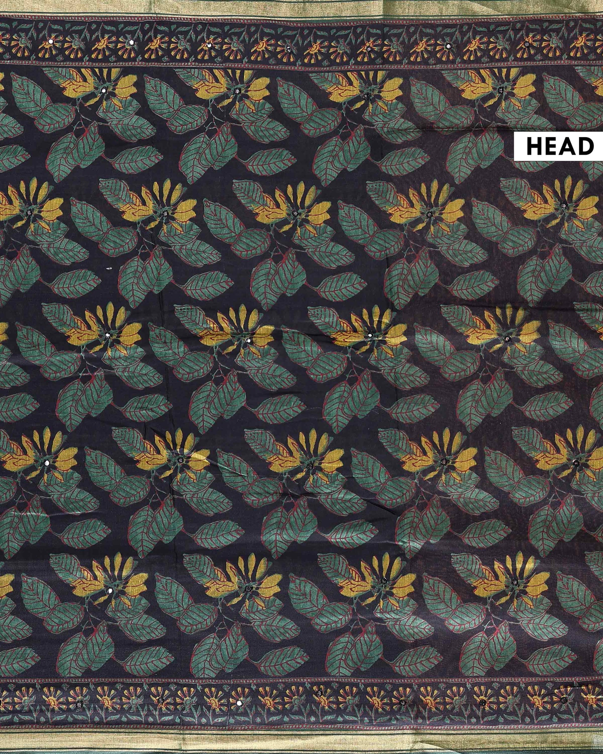 Classic Semi Chanderi Saree with Floral Inspired Print and Zari Border - Navy