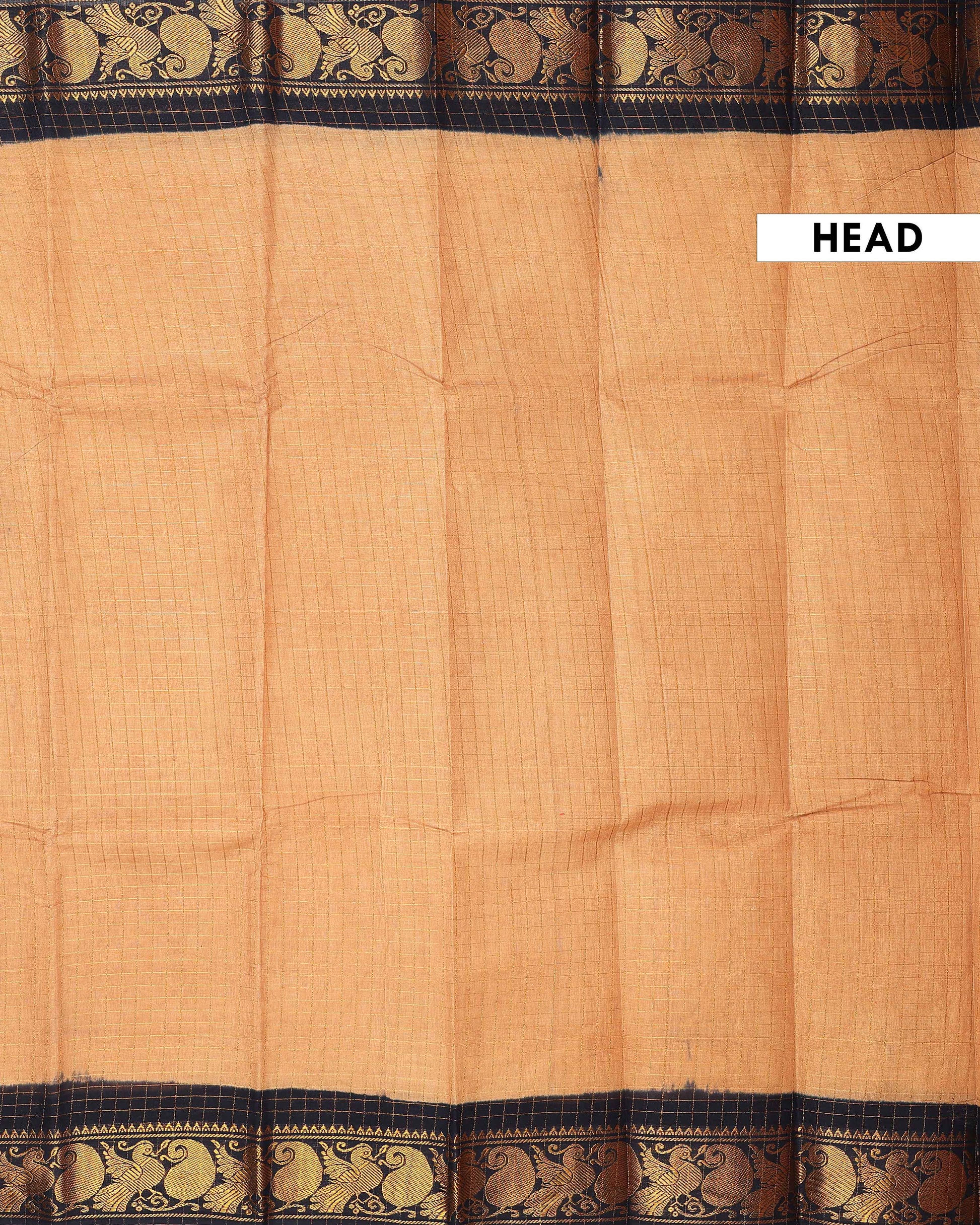 Classic Sungudi Cotton Saree with Zari Border and Checked Design - Sandal