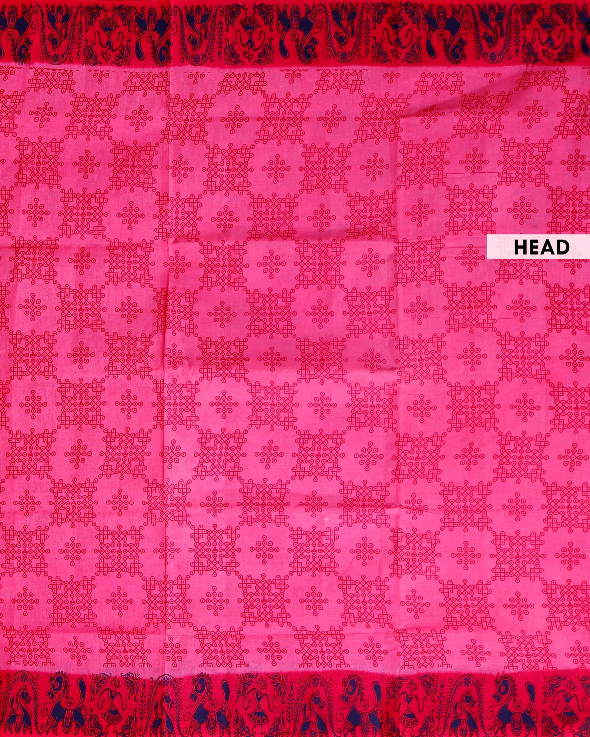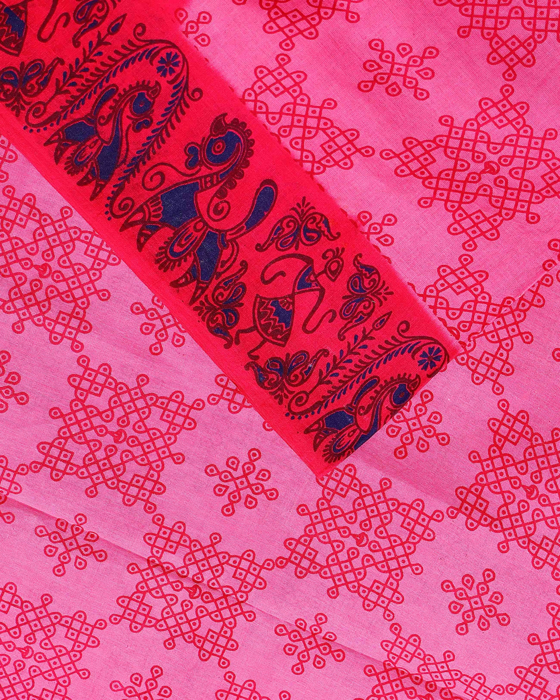 Elegant Sungudi Cotton Saree with Traditional Pattern Design - Pink