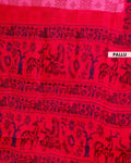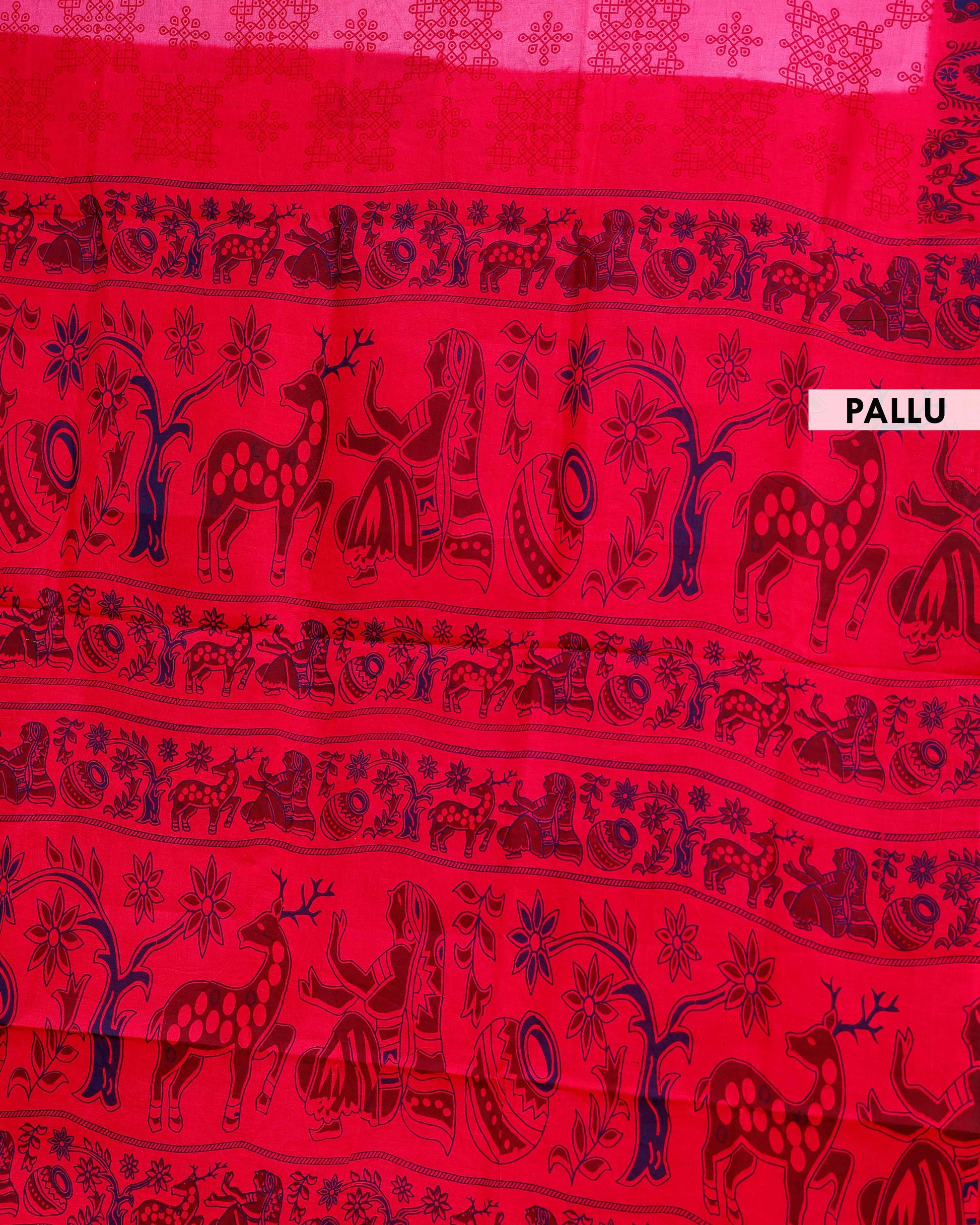 - Traditional Sungudi Cotton Saree intricate motifs with a contrasting Kalamkari style border.
