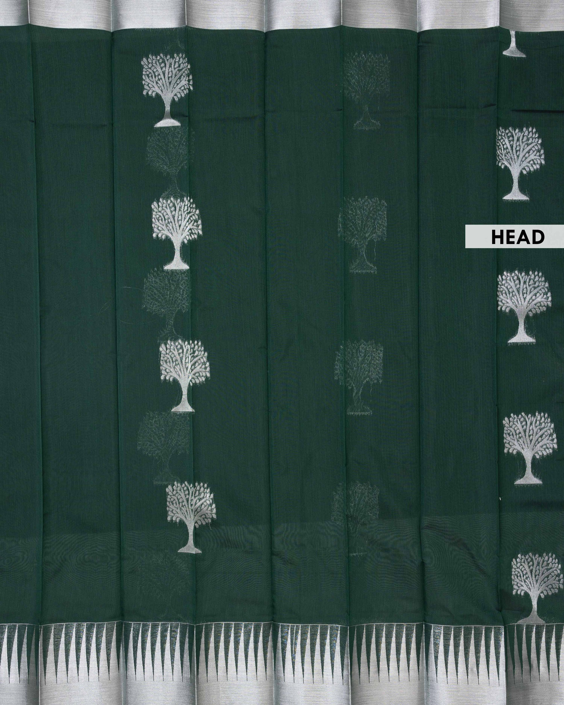 Elampillai Silk Cotton Saree with Tree of Life Motif - Green