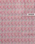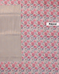 This elegant soft silk saree a delicate floral print border with pink blossoms, offering a blend of traditional charm and modern flair