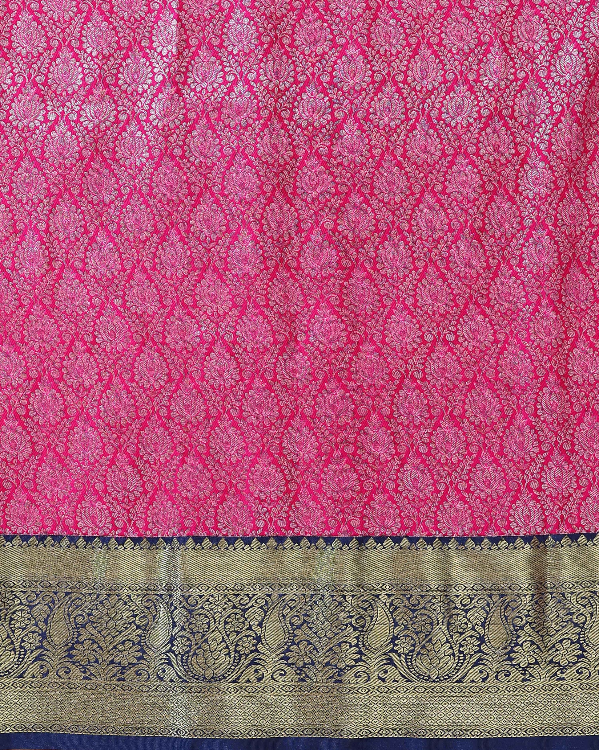 Kanchipuram Pattu Pavadai Material with Zari Border Work-Pink