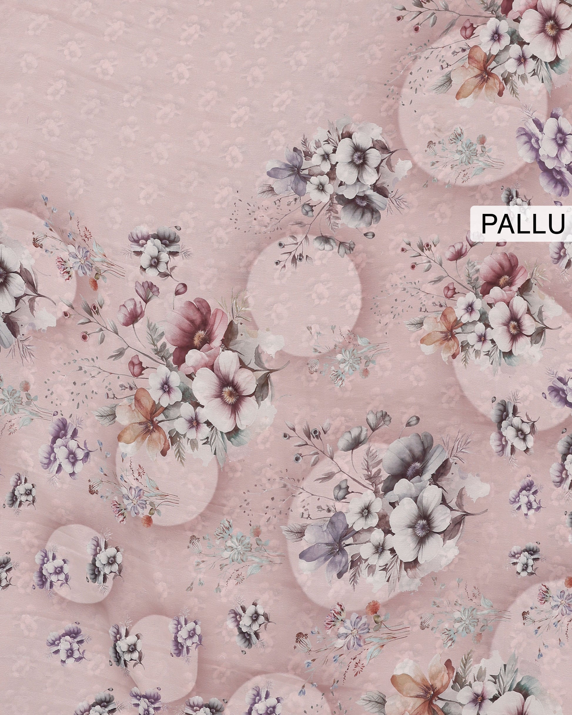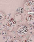 - Elevate your style with this elegant printed Georgette saree, delicate floral patterns in shades of white and purple.