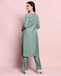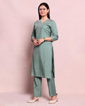 - Elevate your ethnic wardrobe with this elegant sea green Rayon straight kurta and pant set.