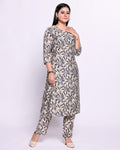 Women's Printed Kurta & Palazzo Set with Floral Motif - Cream