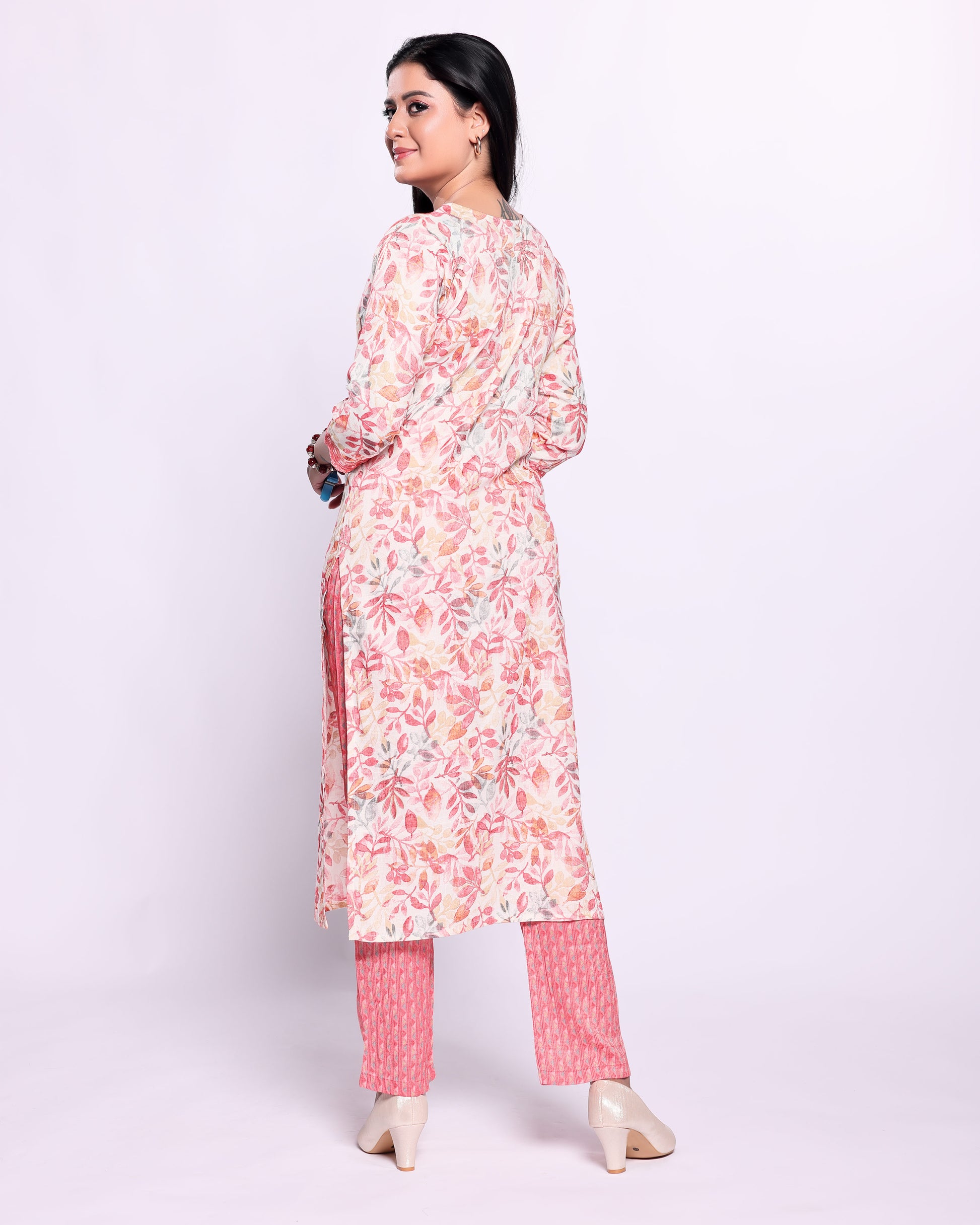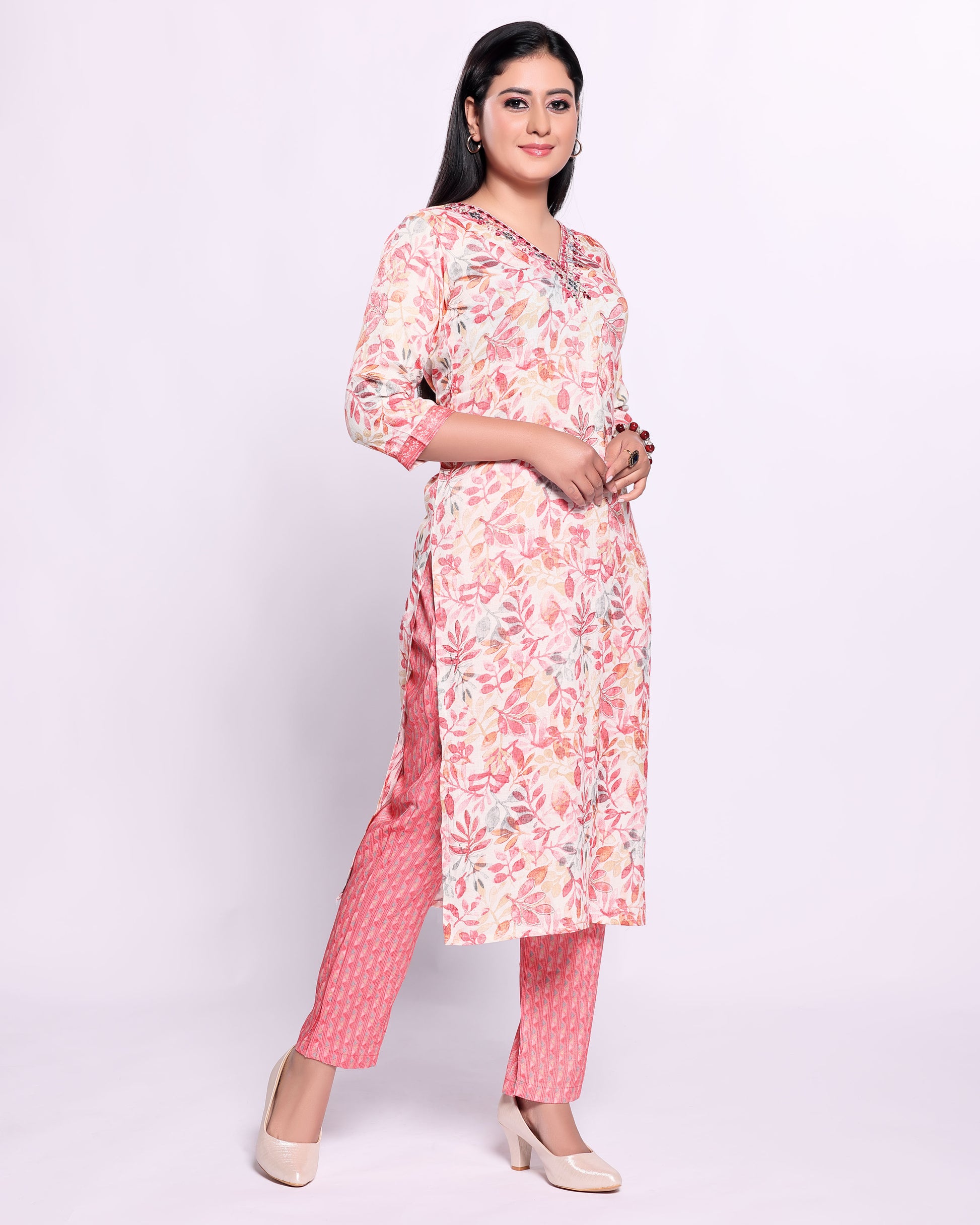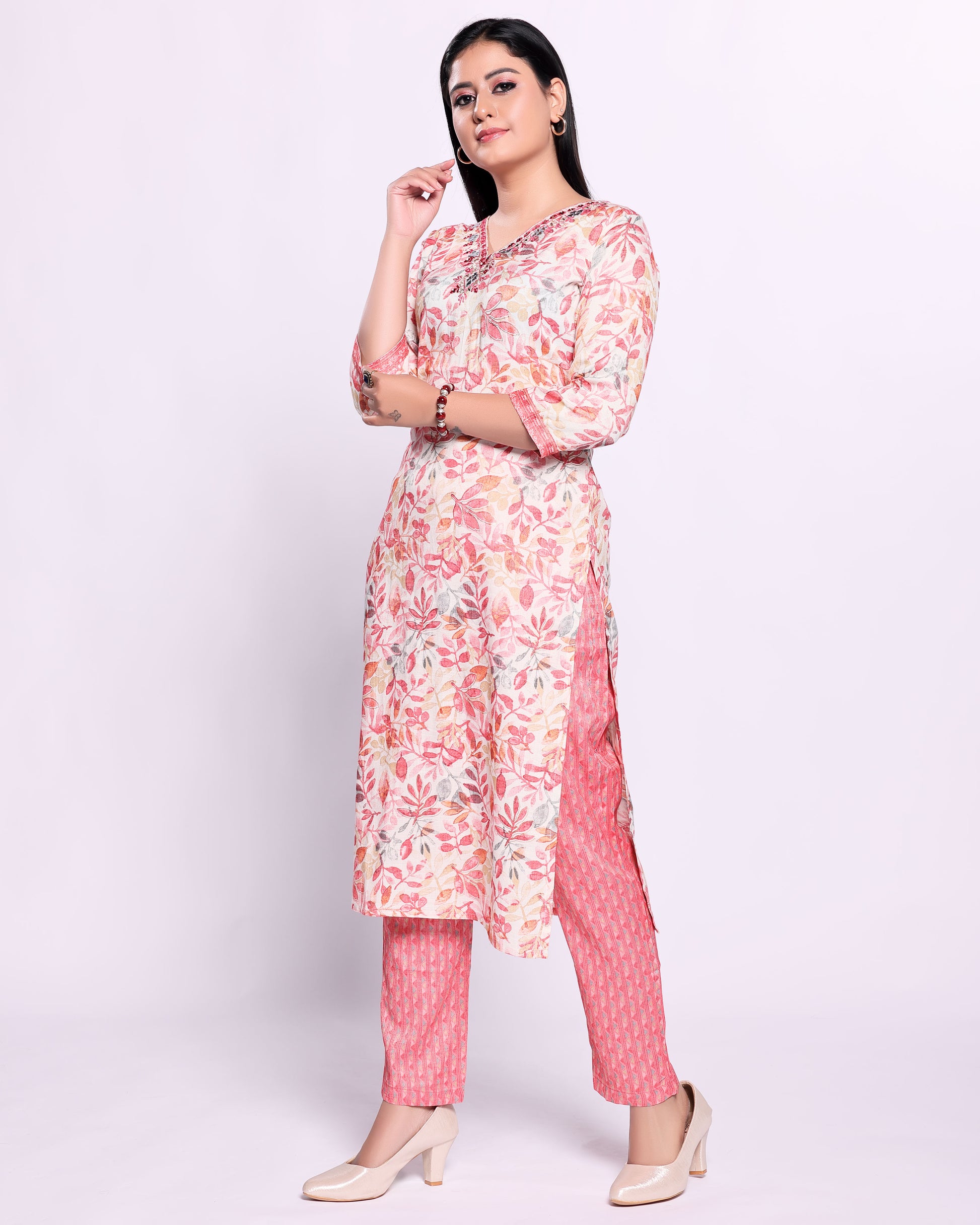 - Elevate your casual wardrobe with this elegant multi colored floral printed kurta and pant set.