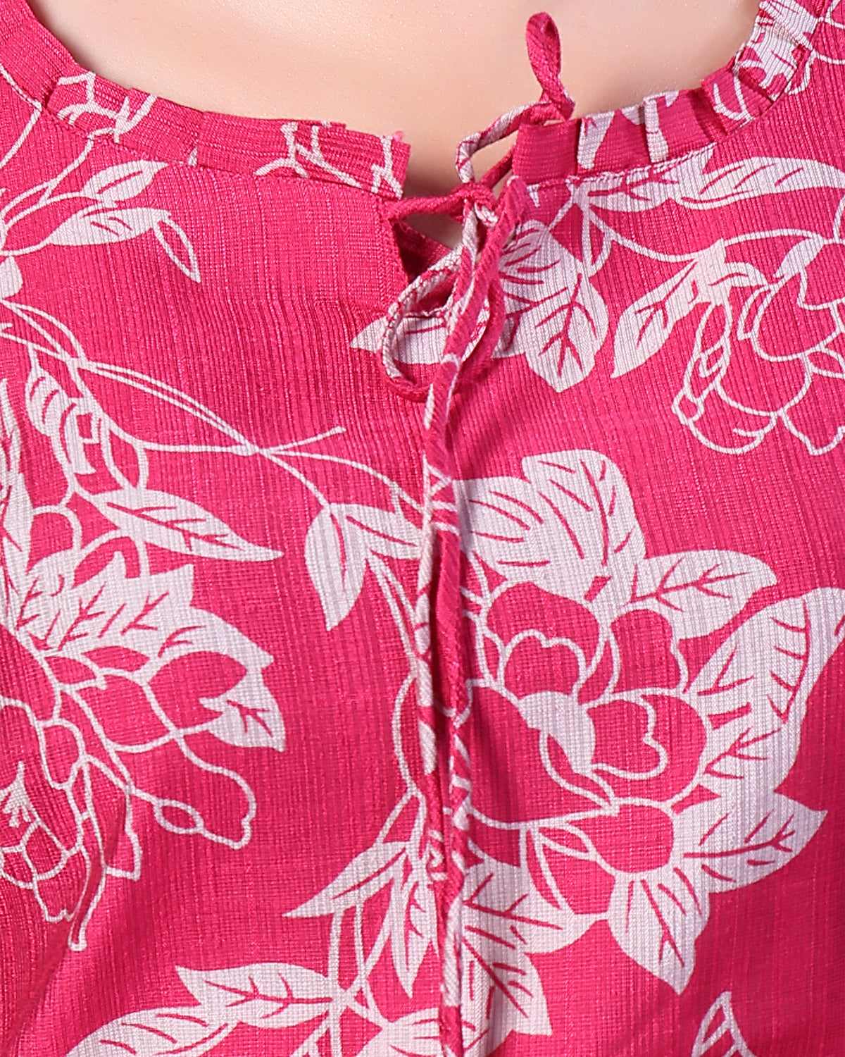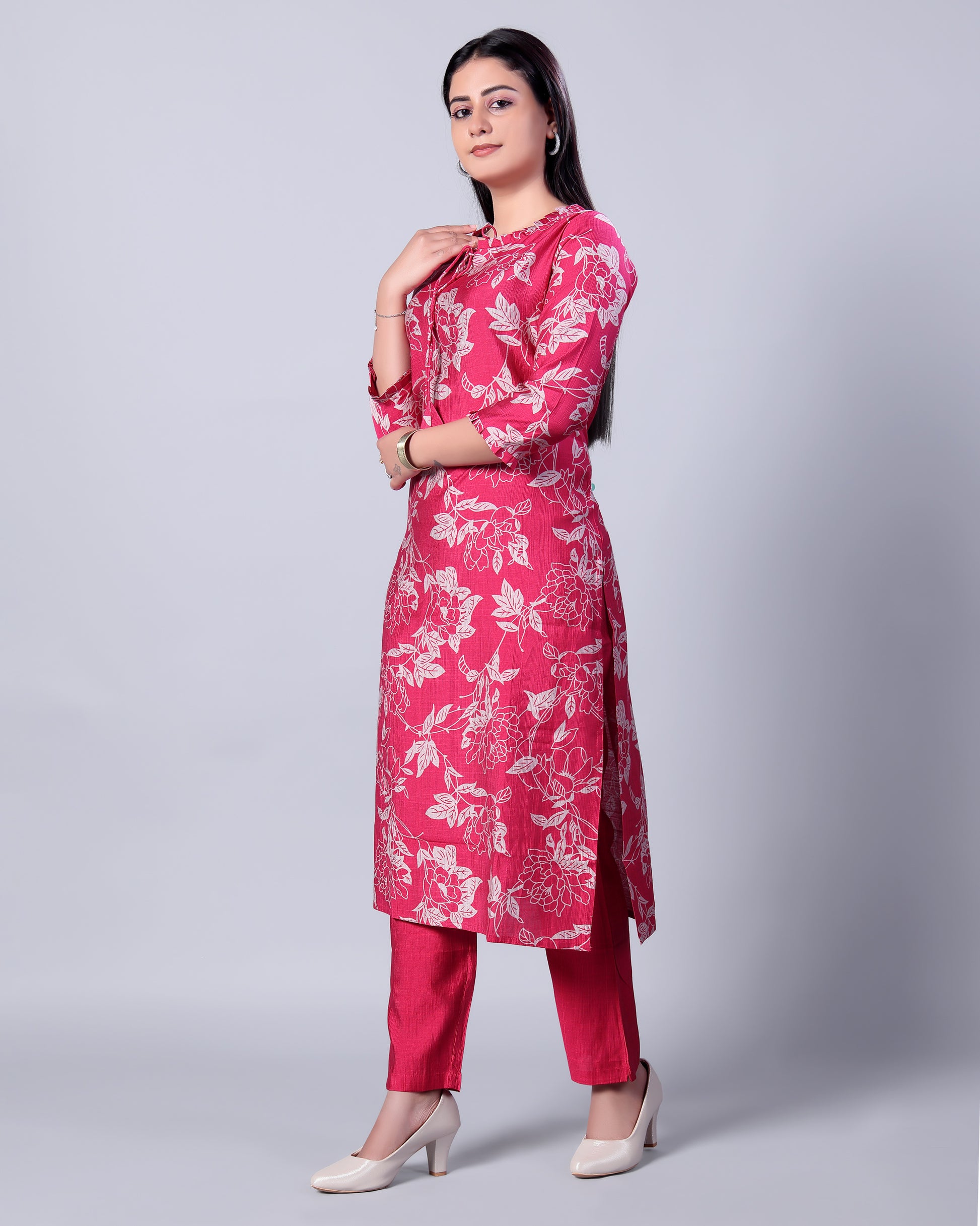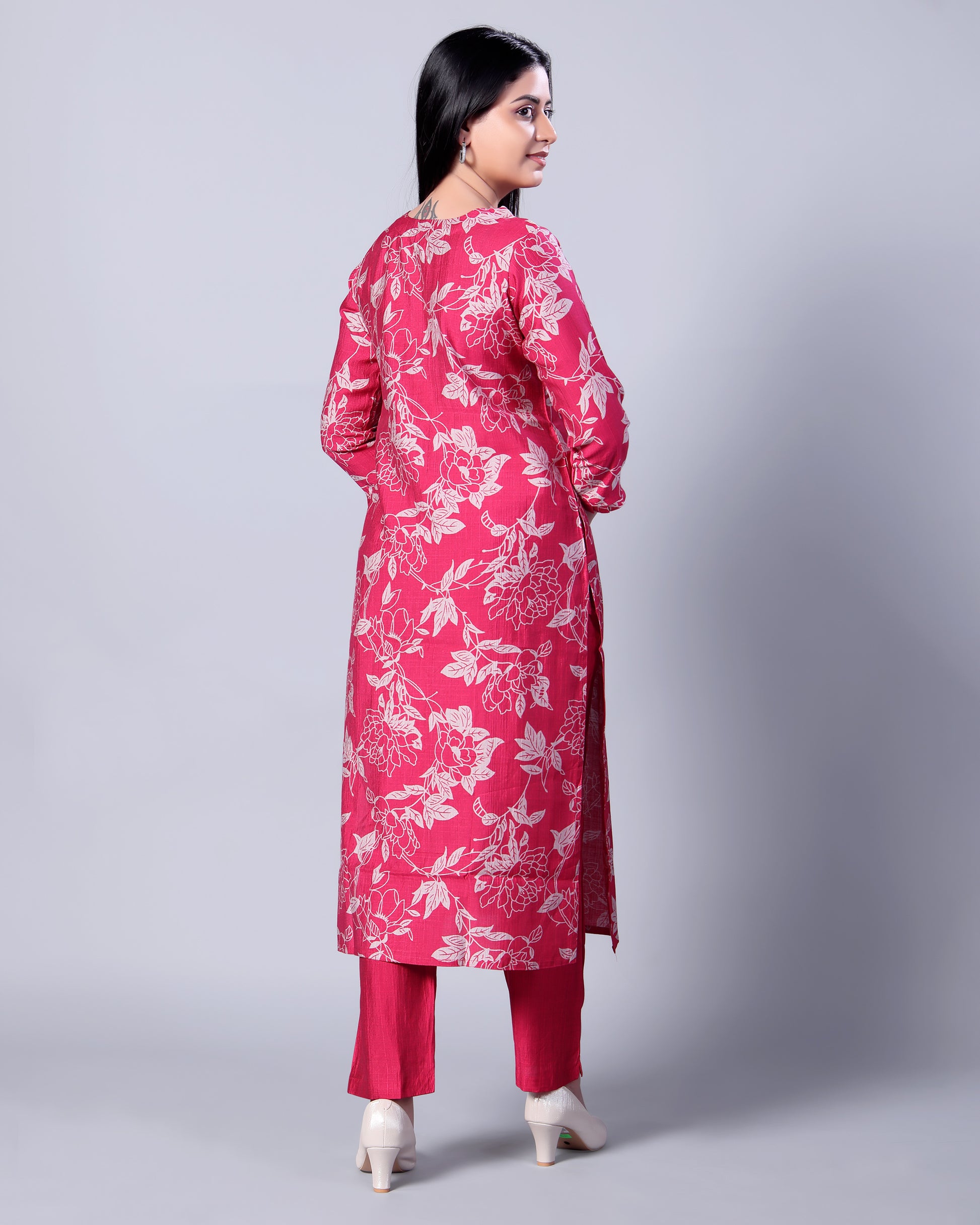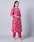 Women's Elegant Floral Print Straight Kurta with Solid Palazzo Set - Magenta