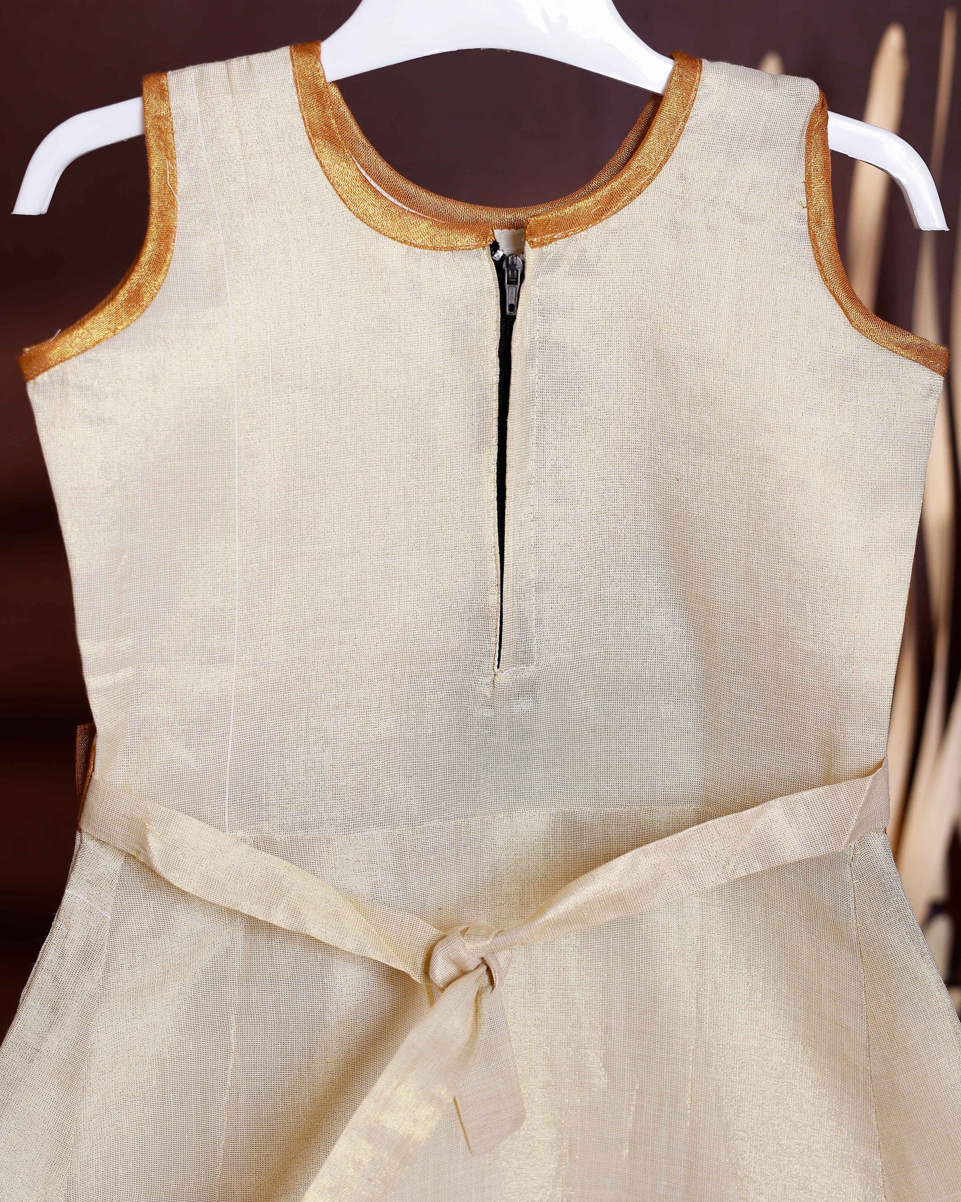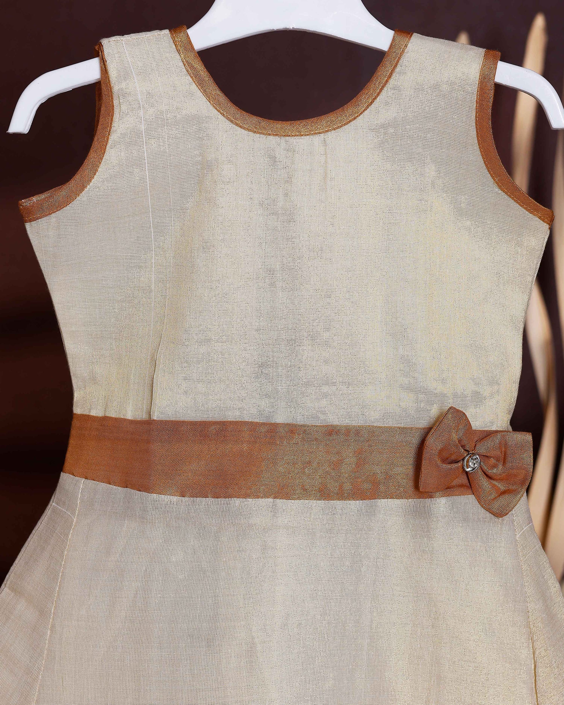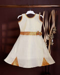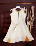 Kids' Sleeveless Frock with Embellished Bow Belt and Contrast - Cream