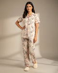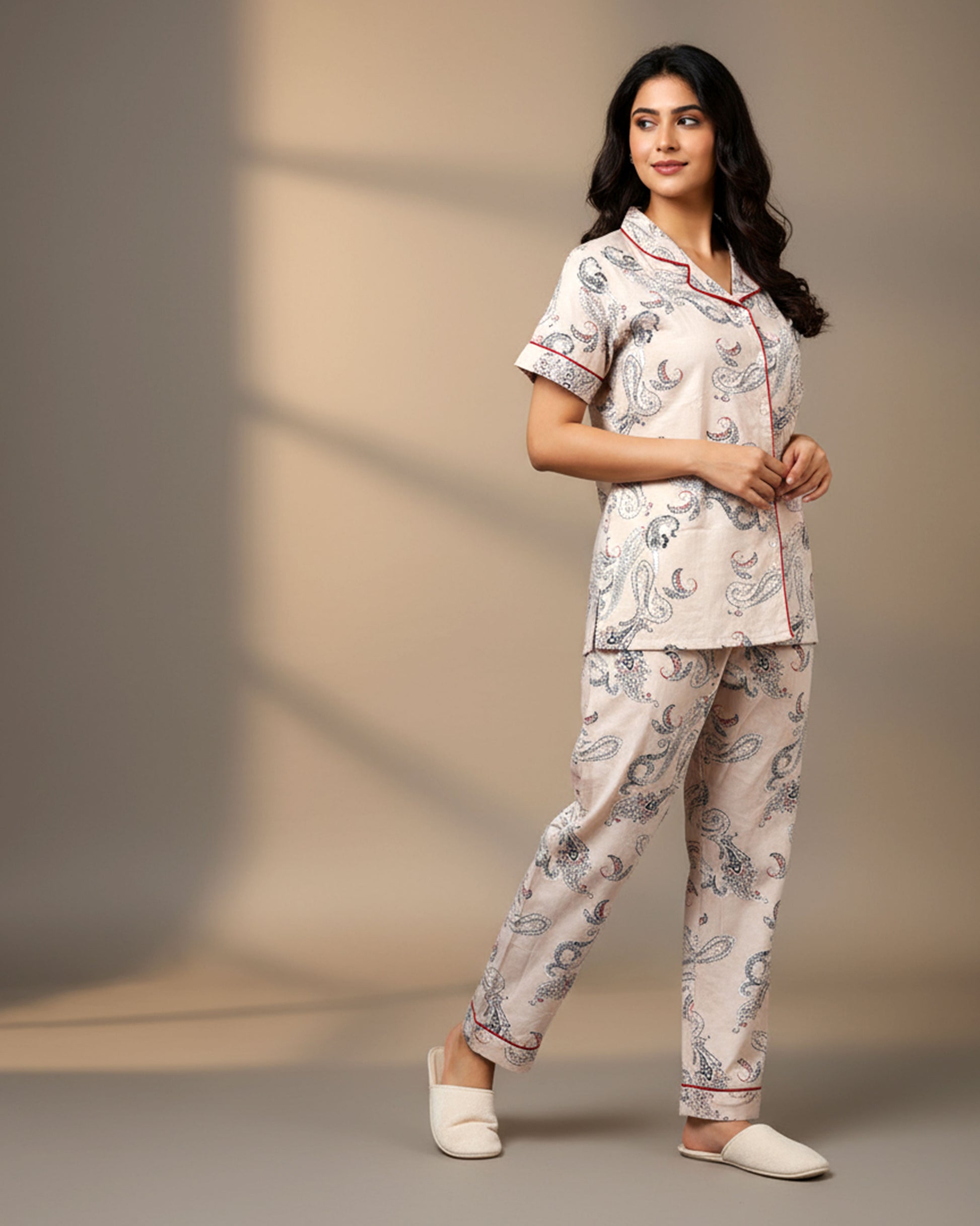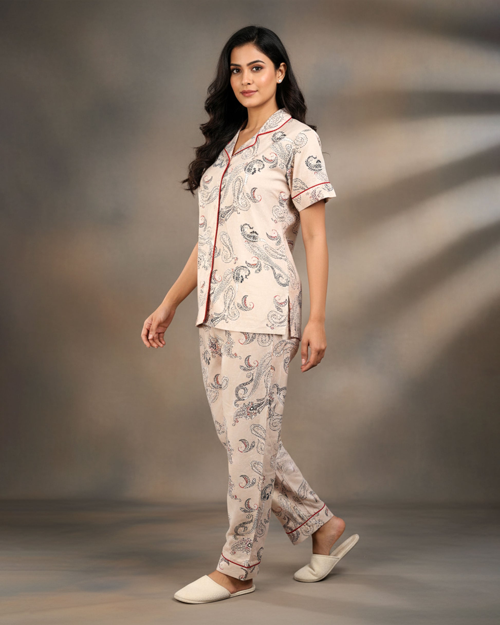 Women's Paisley Print Short Sleeve Night Wear - Cream
