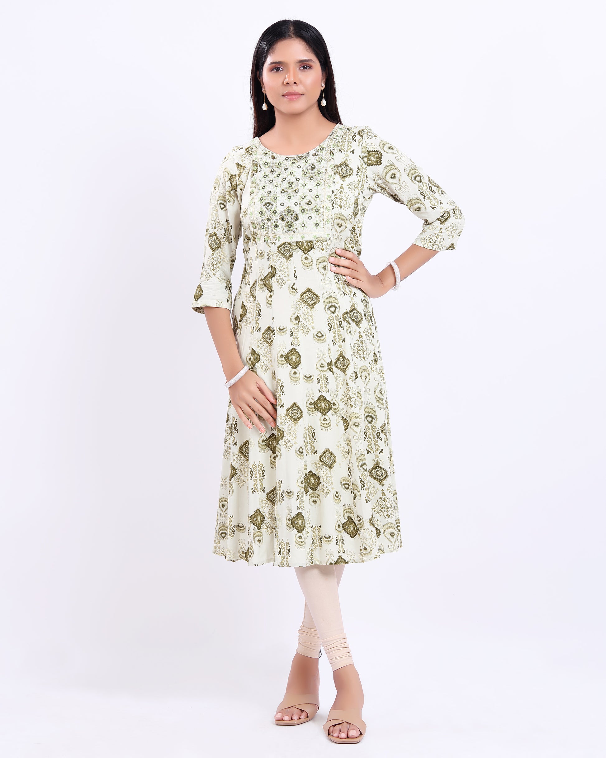 Ethnic Women's Floral Print A-Line Kurta with Elegant Pattern - Green