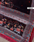 Designer Georgette Saree with Royal Procession Print and Intricately Woven Traditional Border - Black