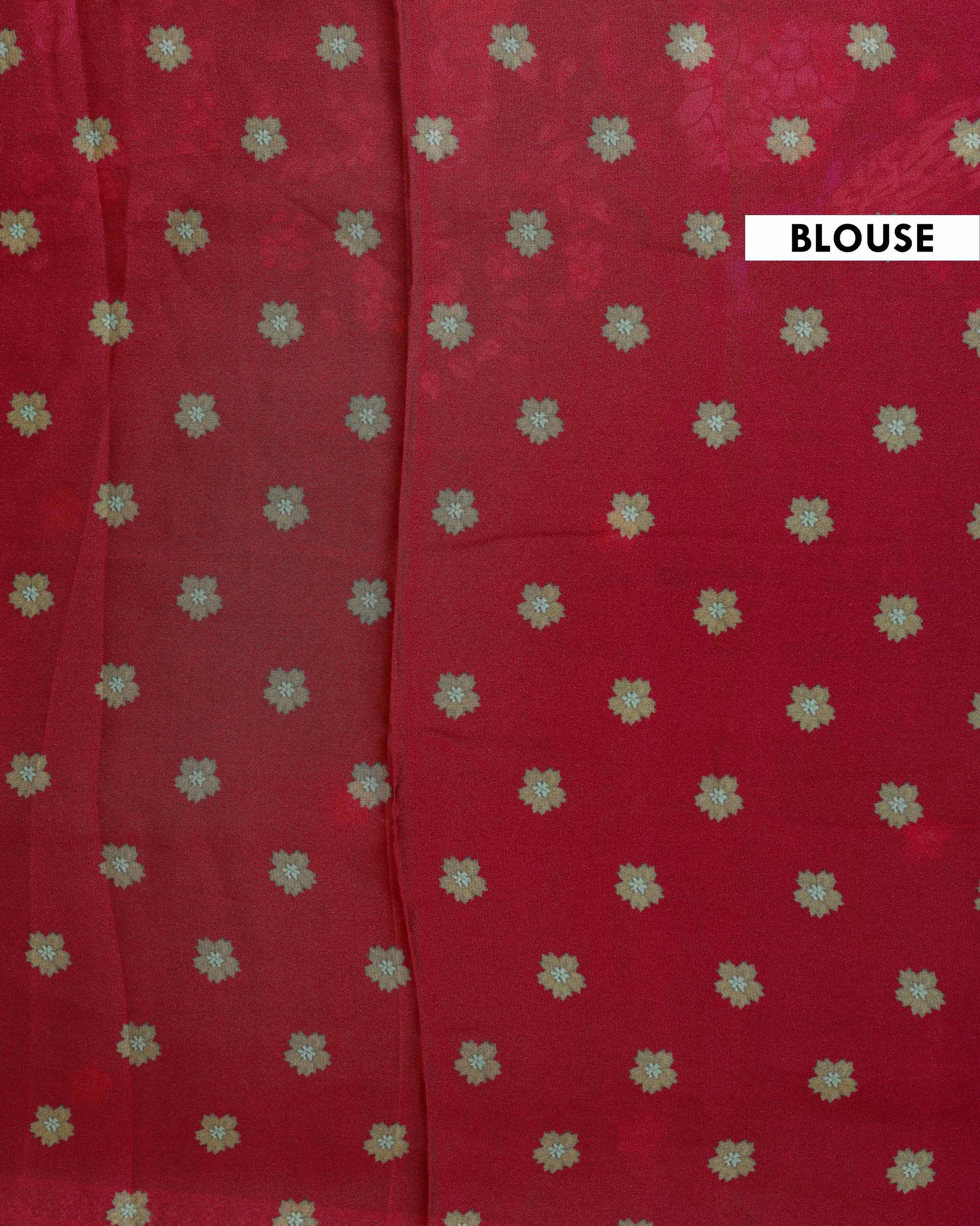 - Elevate your ethnic wardrobe with this stunning Georgette saree, a vibrant royal procession print with traditional elephant and peacock motifs.
