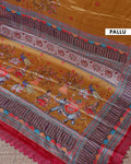 Designer Georgette Saree with Royal Procession Print and Intricately Woven Traditional Border - Mustard