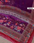 Designer Georgette Saree with Royal Procession Print and Intricately Woven Traditional Border - Purple