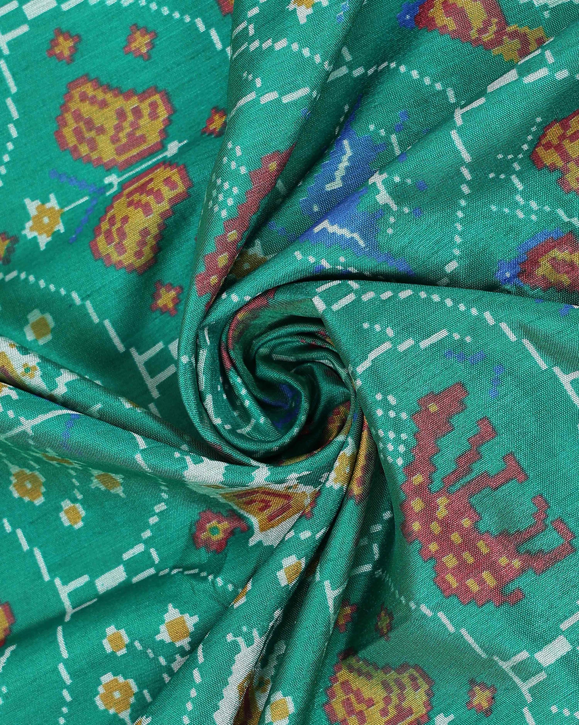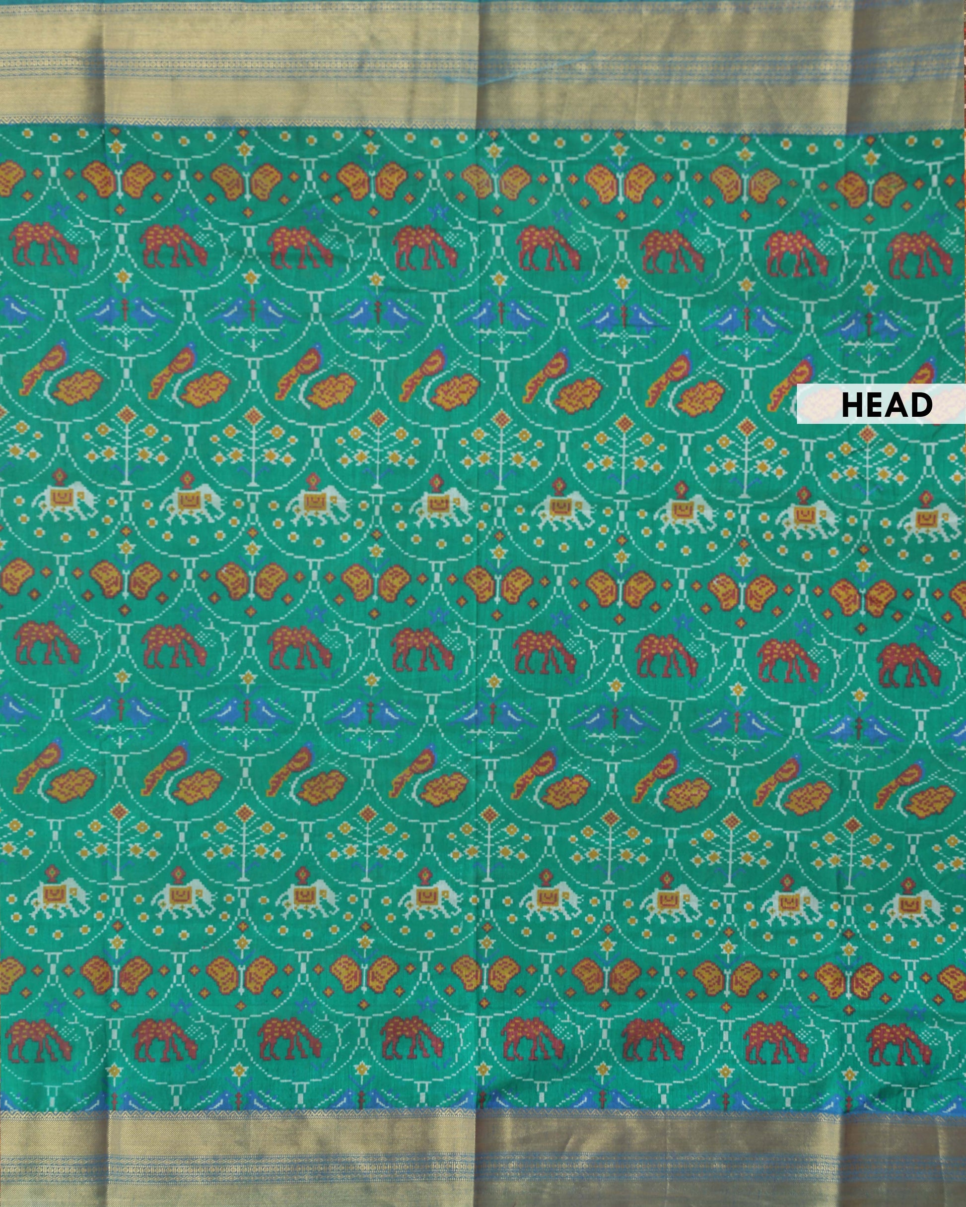 Designer Patola Saree with Intricate Elephant and Geometric Patterns - Green