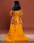 Girls Ethnic Printed Peplum Top & Pleated Skirt Set with Ruffled Sleeves Kids Choli - Yellow