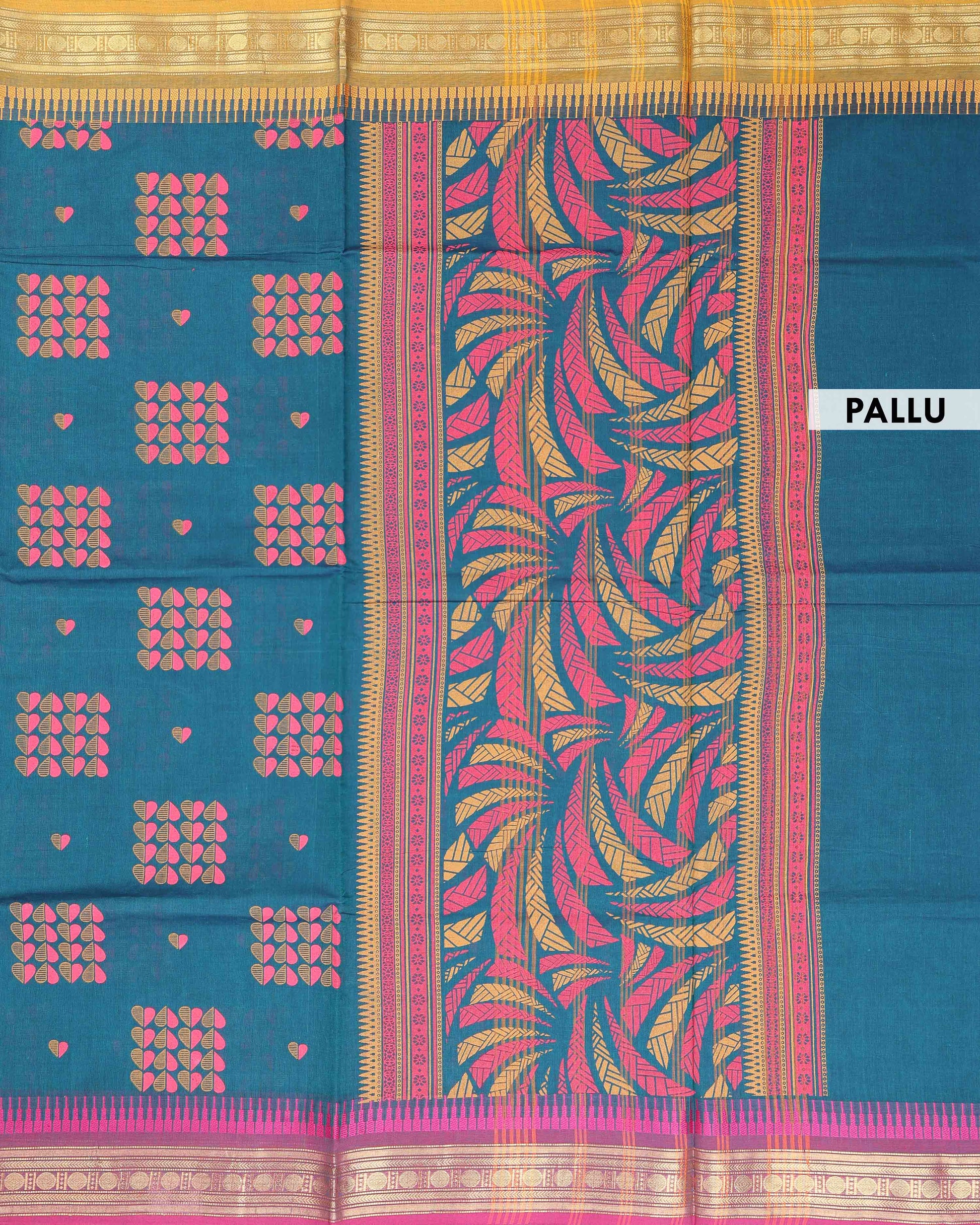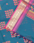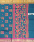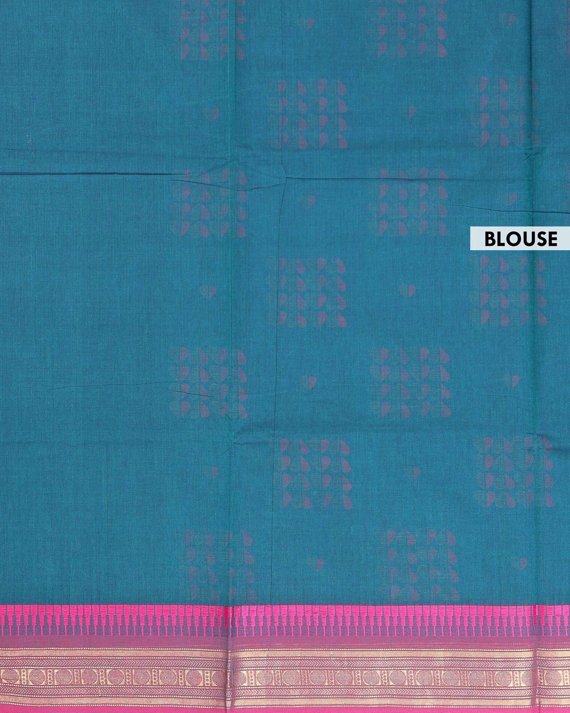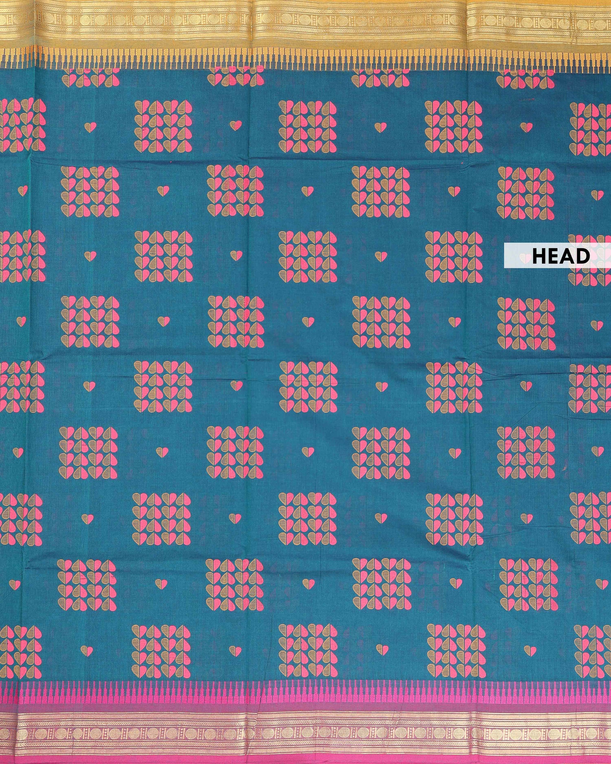 Traditional Handloom Cotton Saree with Geometric Weave - Teal