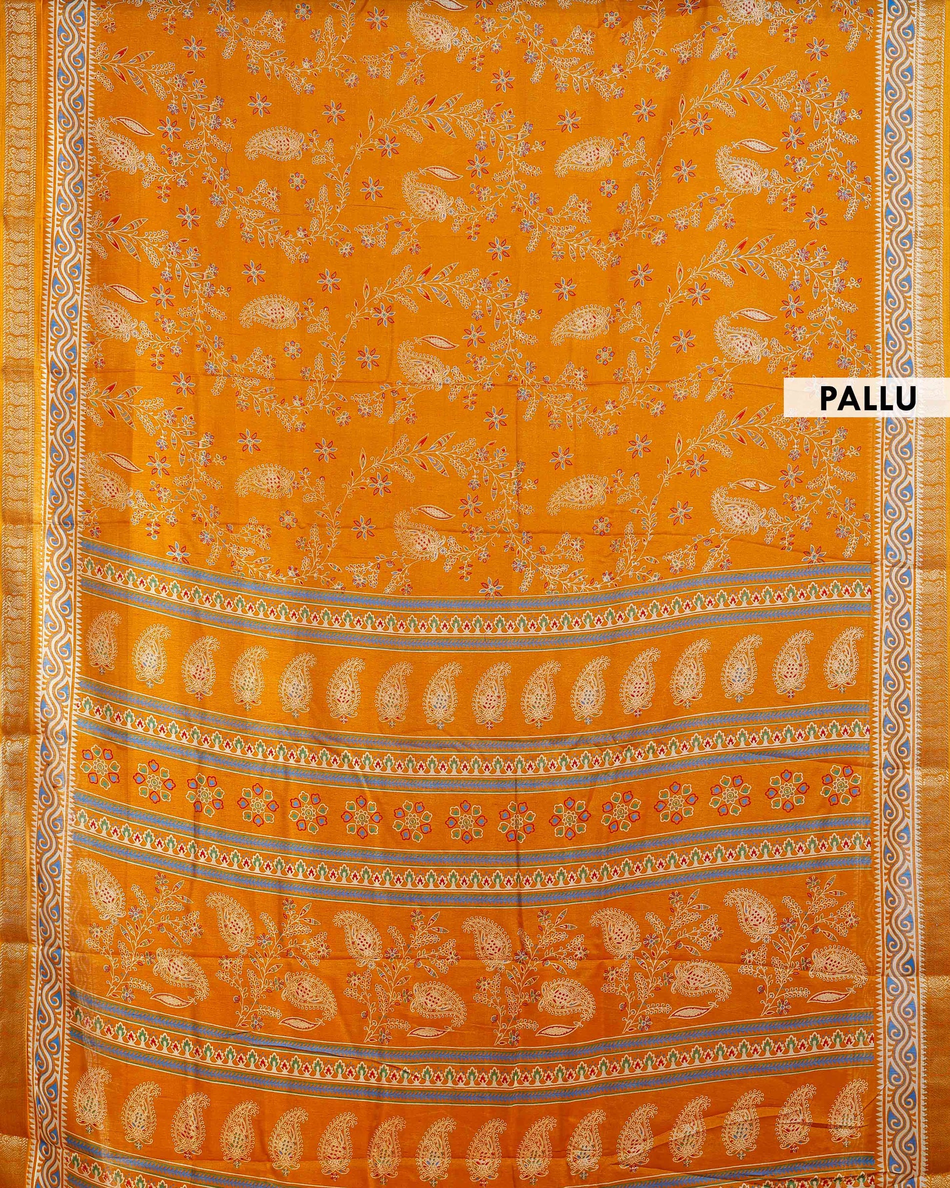 Elegance Traditional Floral Print Art Silk Saree in Yellow