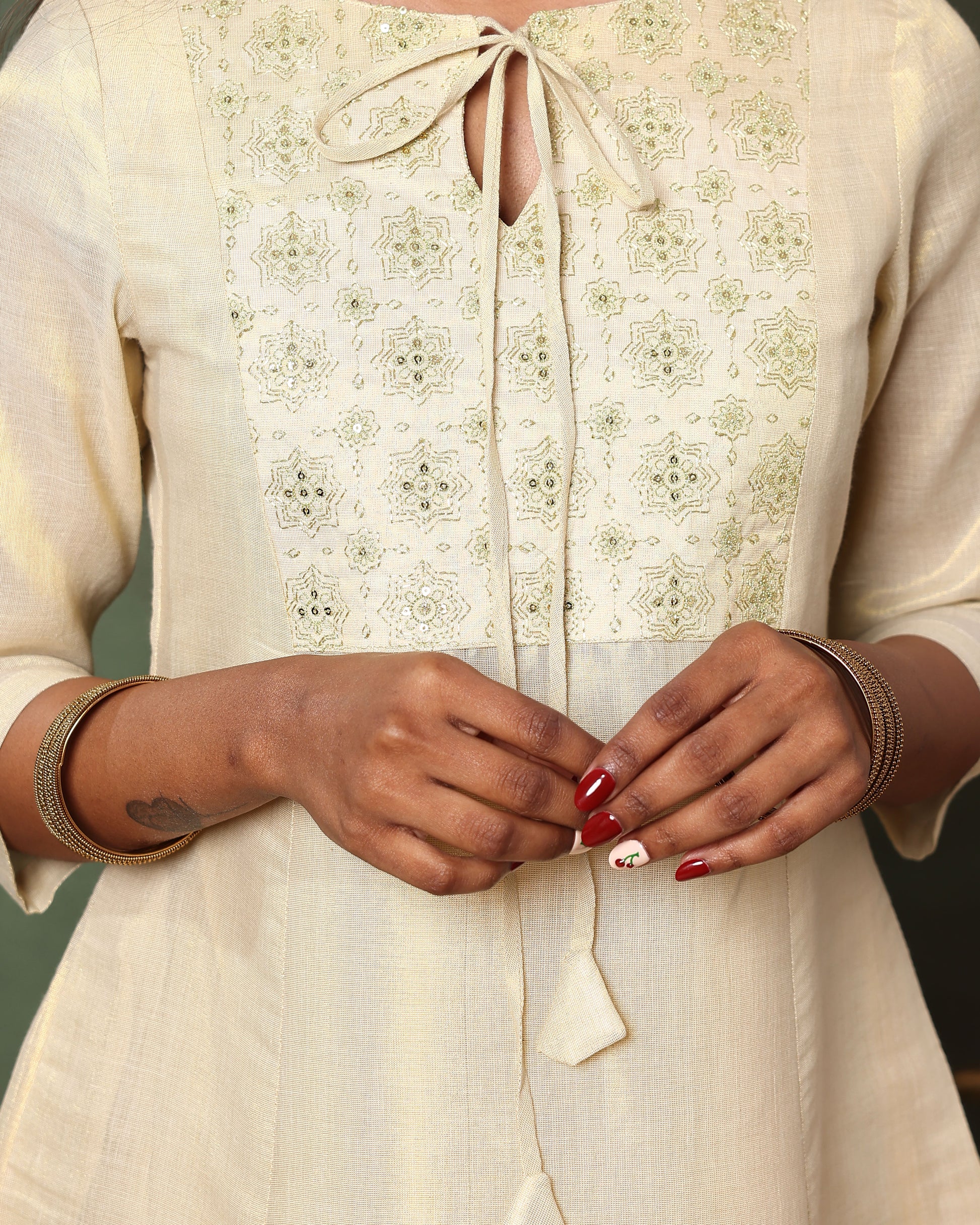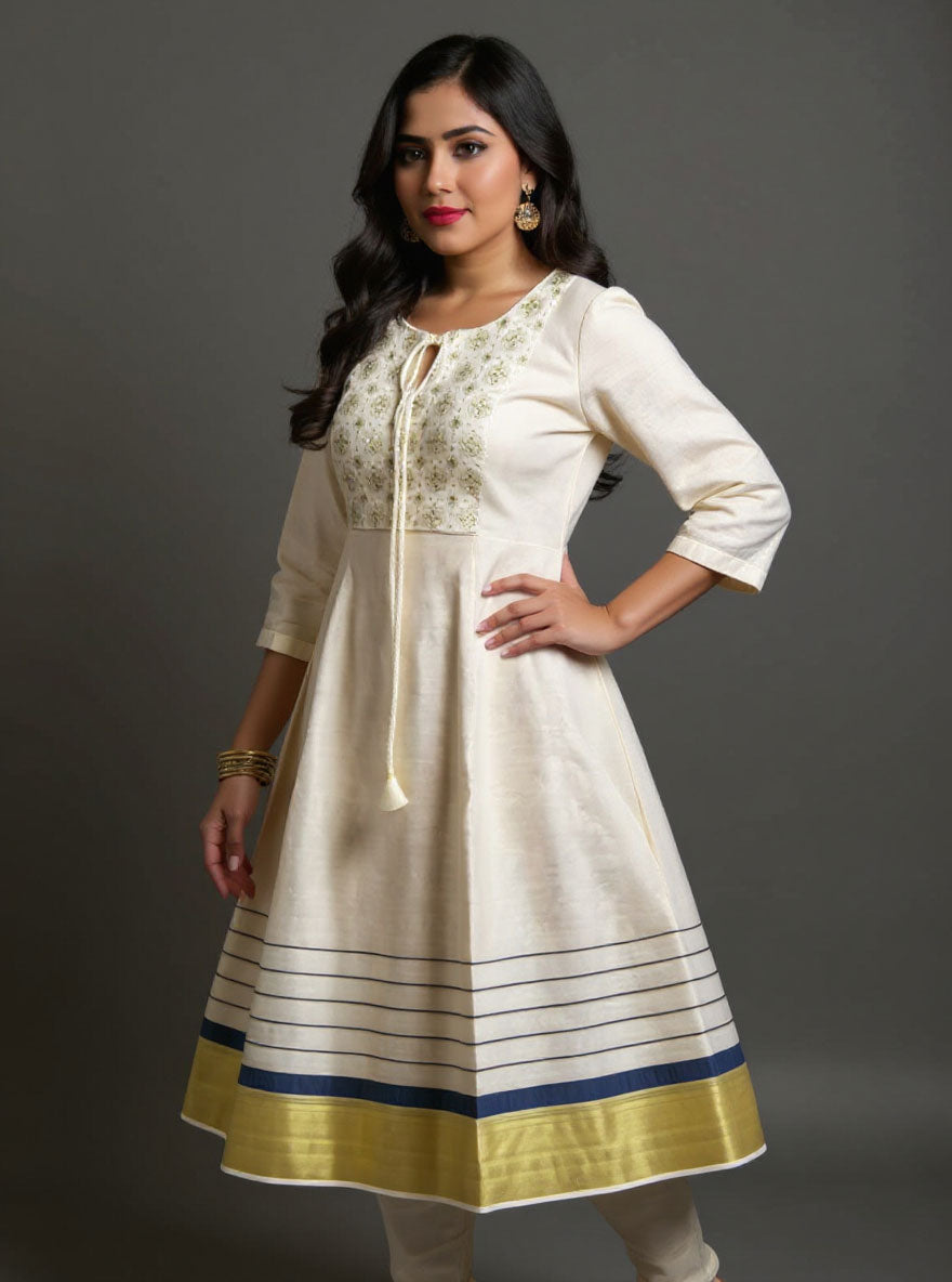 Elegance Traditional Kasavu-Inspired Kurta - Gold