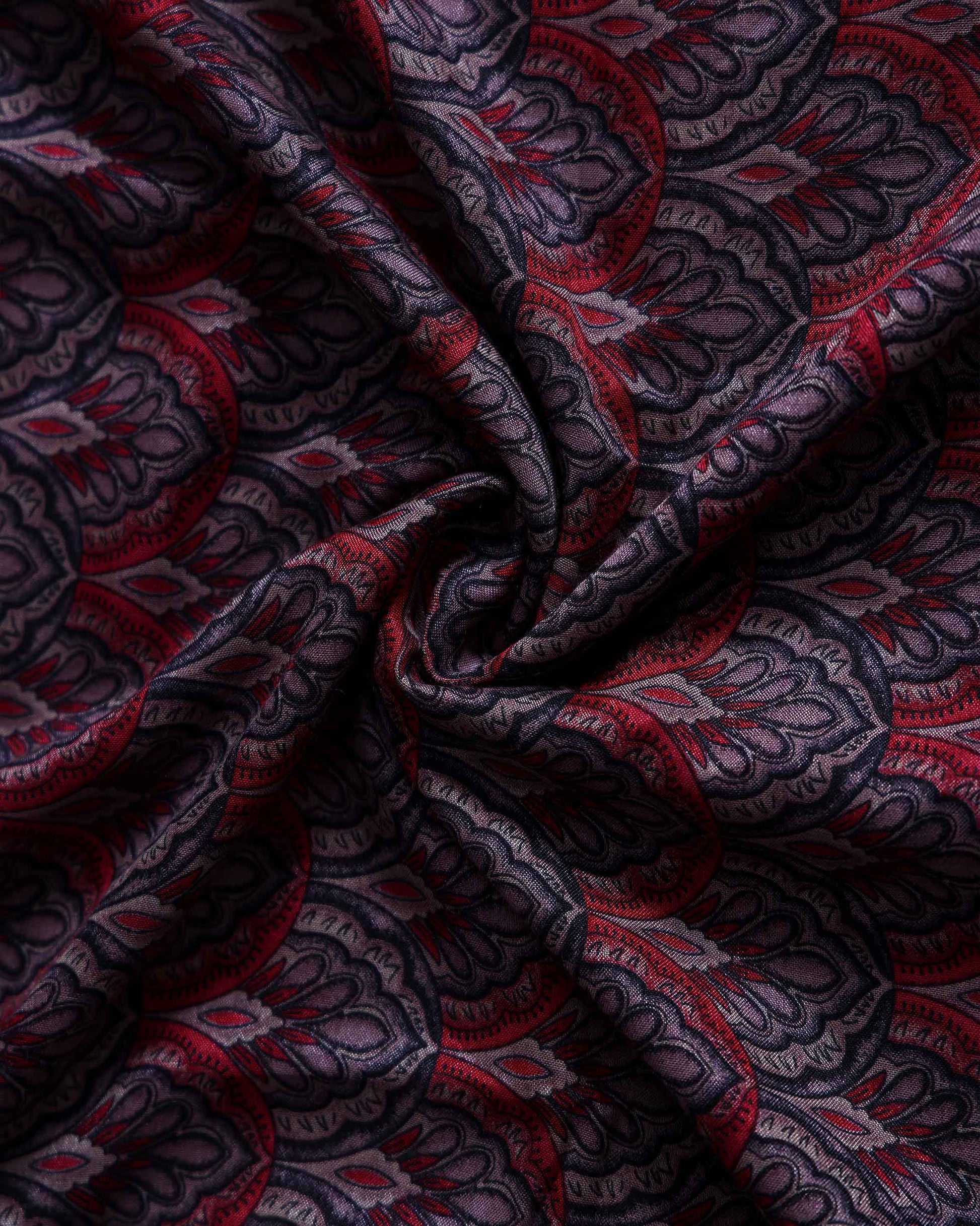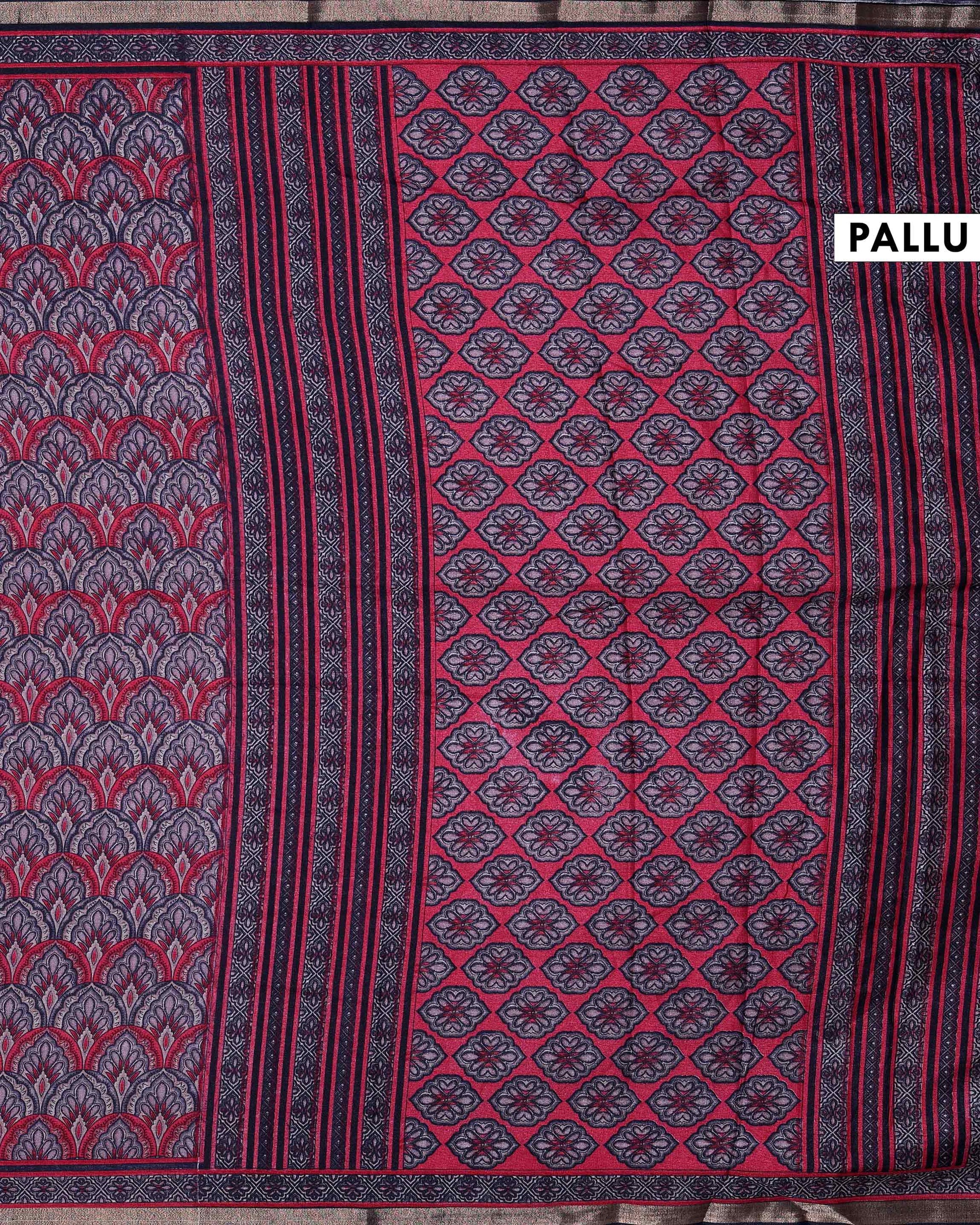 - Elevate your ethnic wardrobe with this stunning maroon and blue Ajrakh printed modal silk saree, perfect for any occasion.