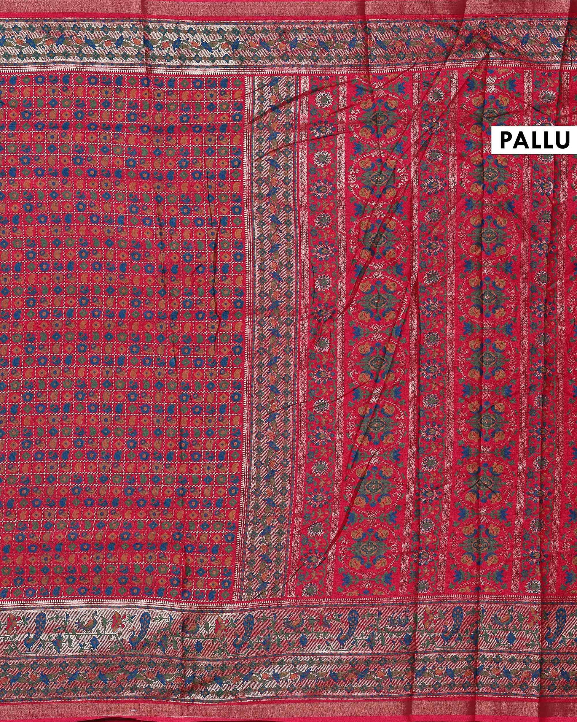 Elegant Art Silk Saree with Intricate Folk Inspired Allover Motifs and Traditional Woven Border - Dark Pink